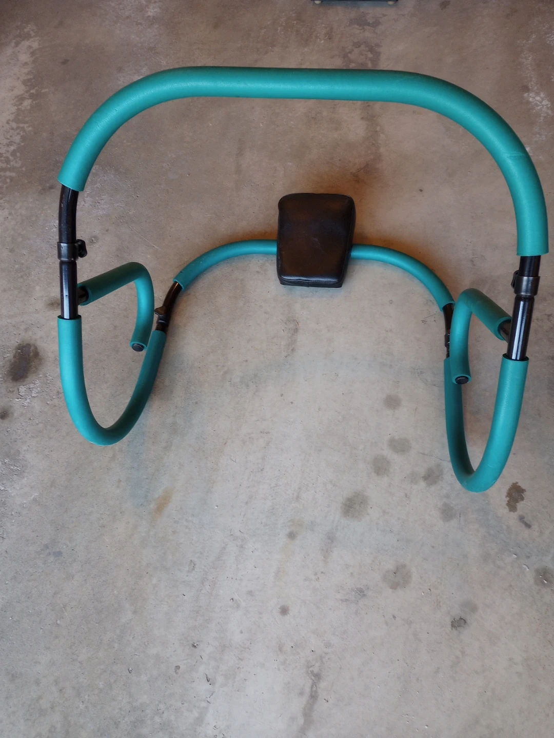 This is an ab roller wheel exercise machine designed for core workouts. It features a padded headrest and sturdy construction. This equipment is great for targeting abdominal muscles.
