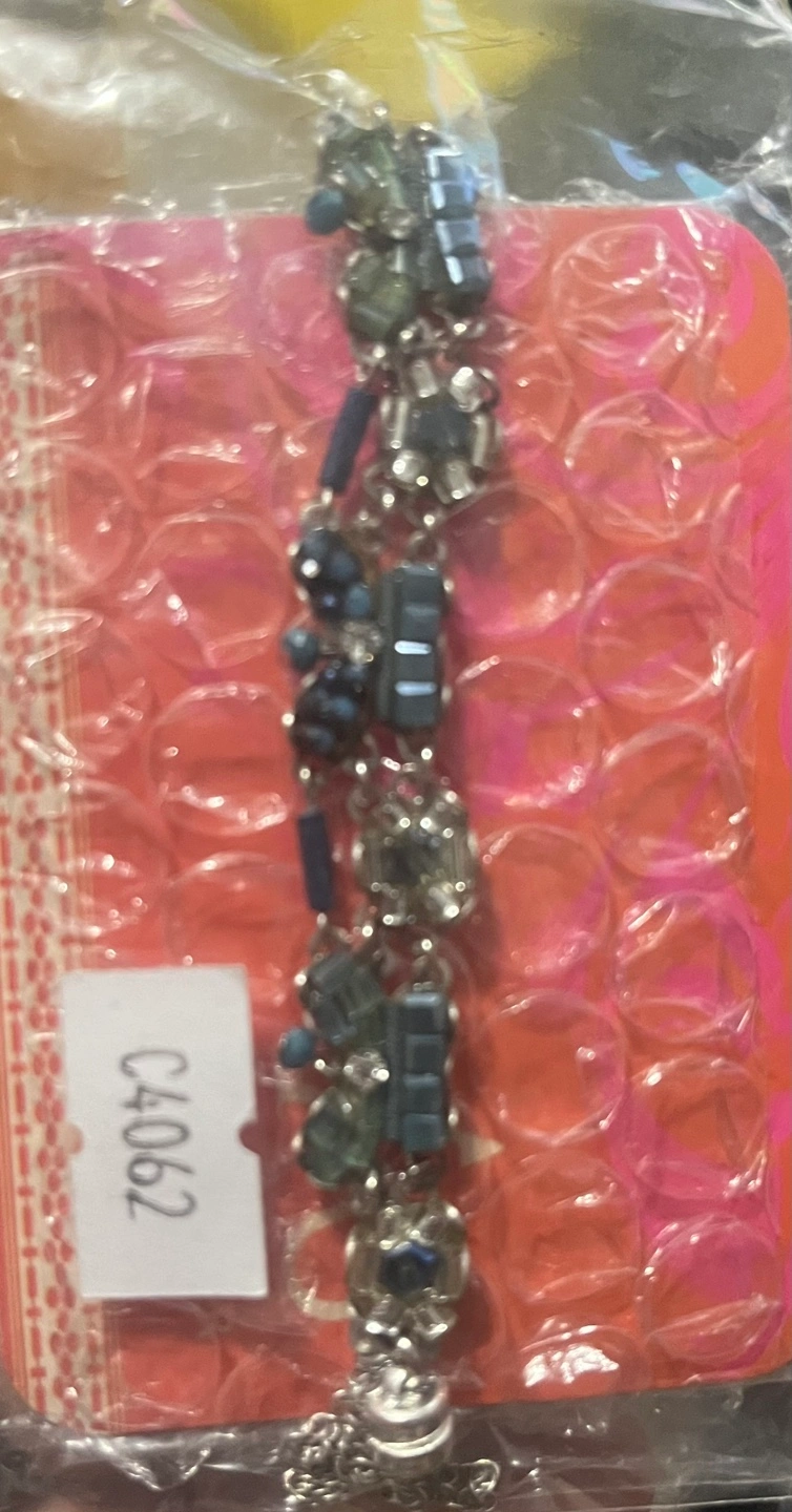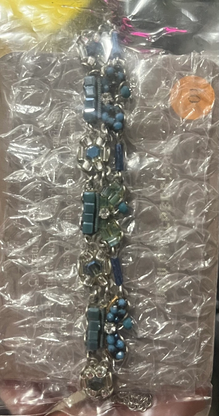 Beautiful beaded bracelet. Features blue and silver charms. New with tags. Gorgeous statement piece.