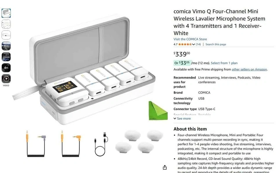This is a brand new and unopened Comica Vimo Q compact wireless microphone system. It features dual transmitters, great range, and delivers really clean audio.