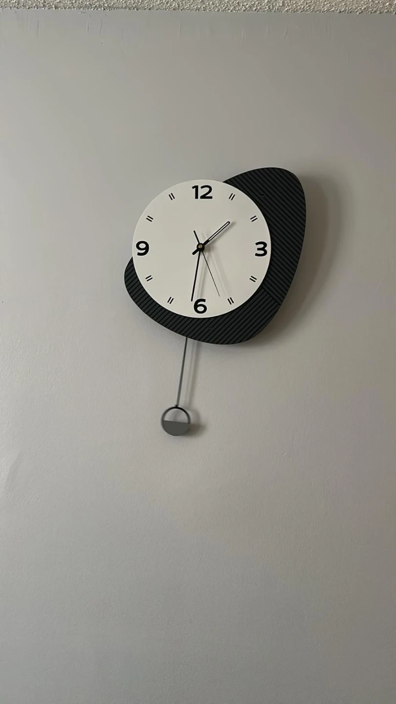 This modern wall clock features a unique abstract design with a swinging pendulum. It's a great way to add a stylish touch to your living space. The clock has clear hour markers and black hands for easy reading. Pick up @ Long branch, Etobicoke. Call this number 647 949 2962 now