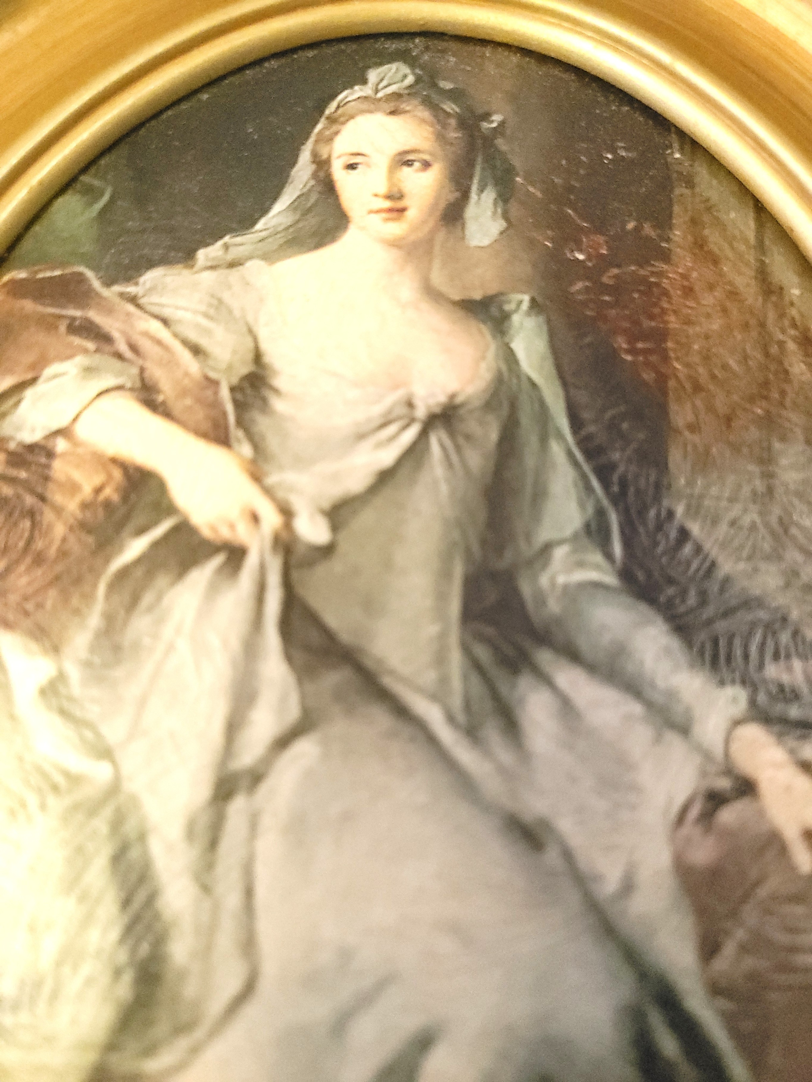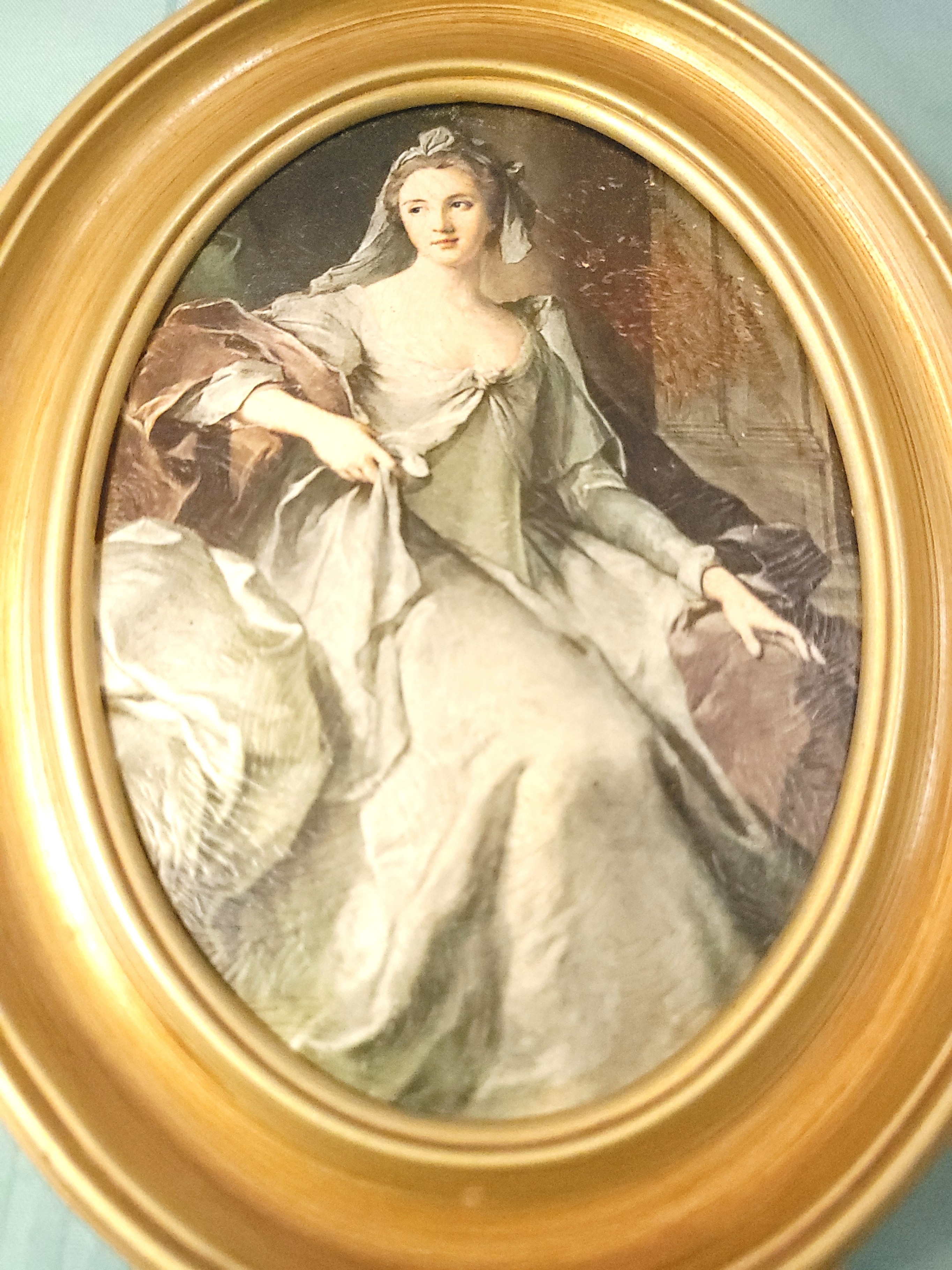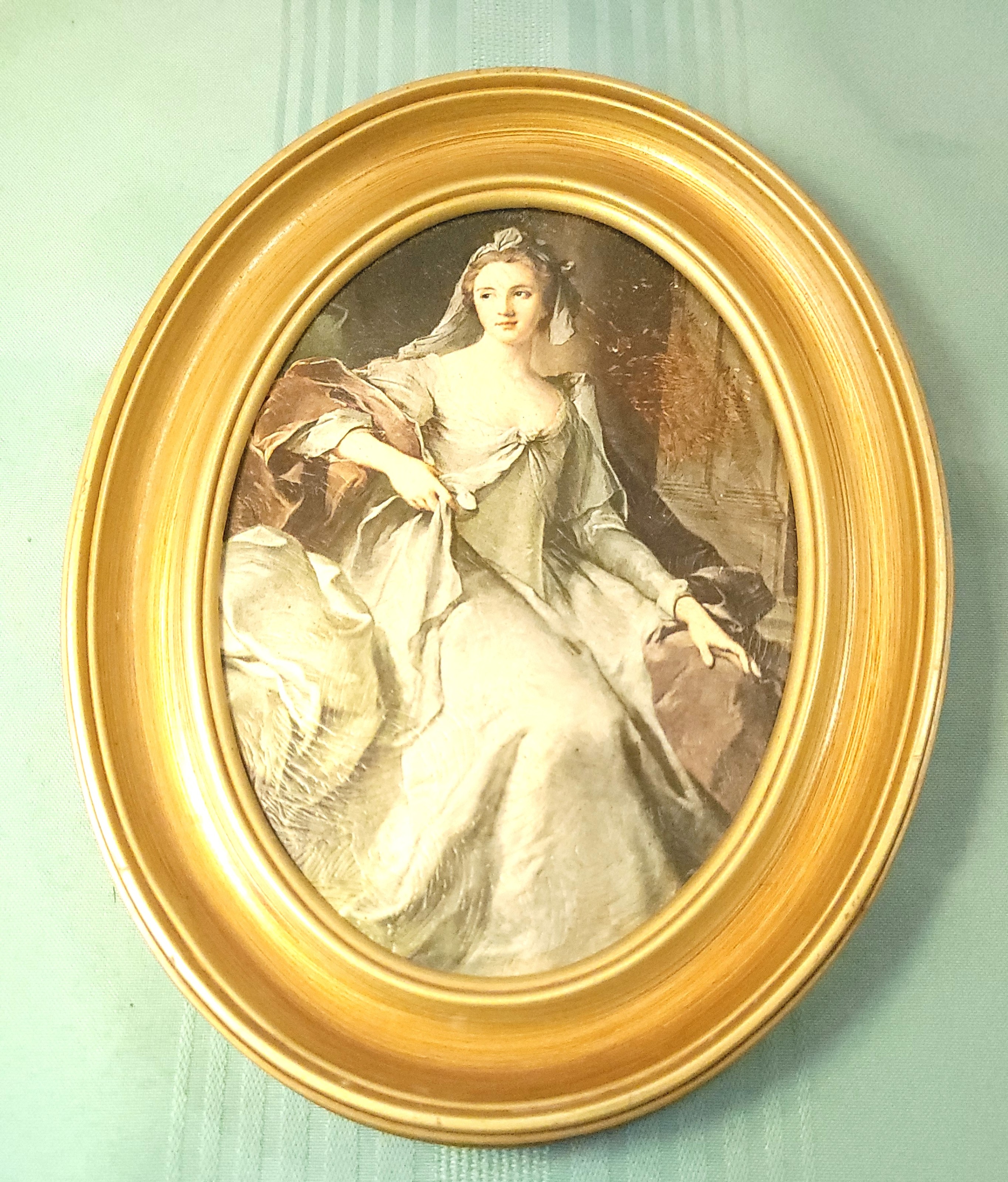 1960s Italian Ornate Gold Oval Frame Alexander Roslin Lady