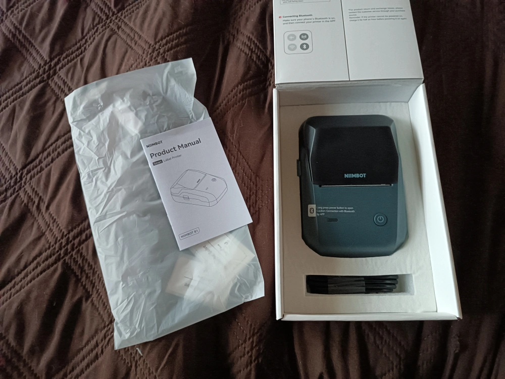 Selling a Niimbot B1 label printer in space blue! It's in great condition and comes with its original box and product manual. Perfect for organizing and labeling everything around the house or office, or for small business.