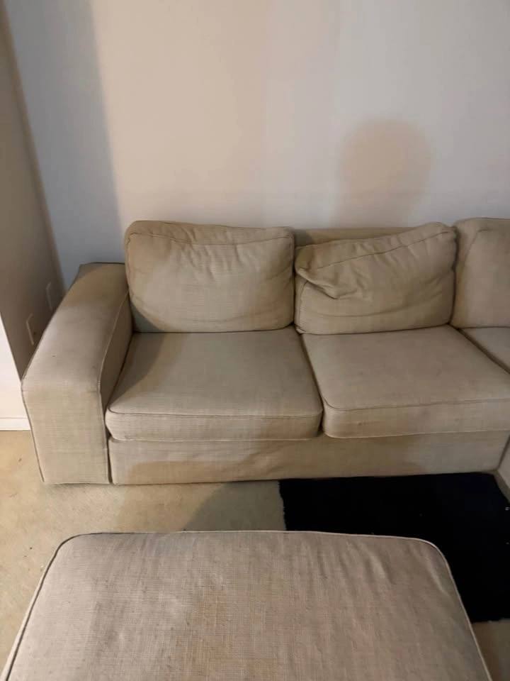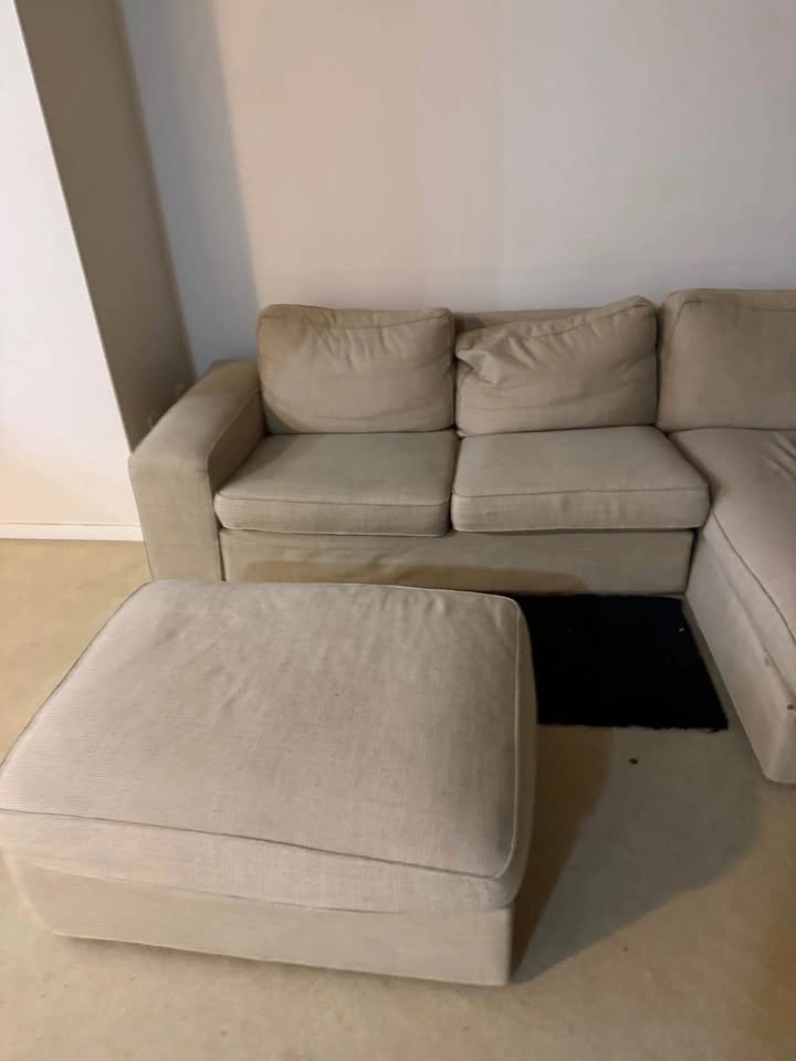 Modern Beige Sectional Couch + Ottoman - Comfortable & Spacious