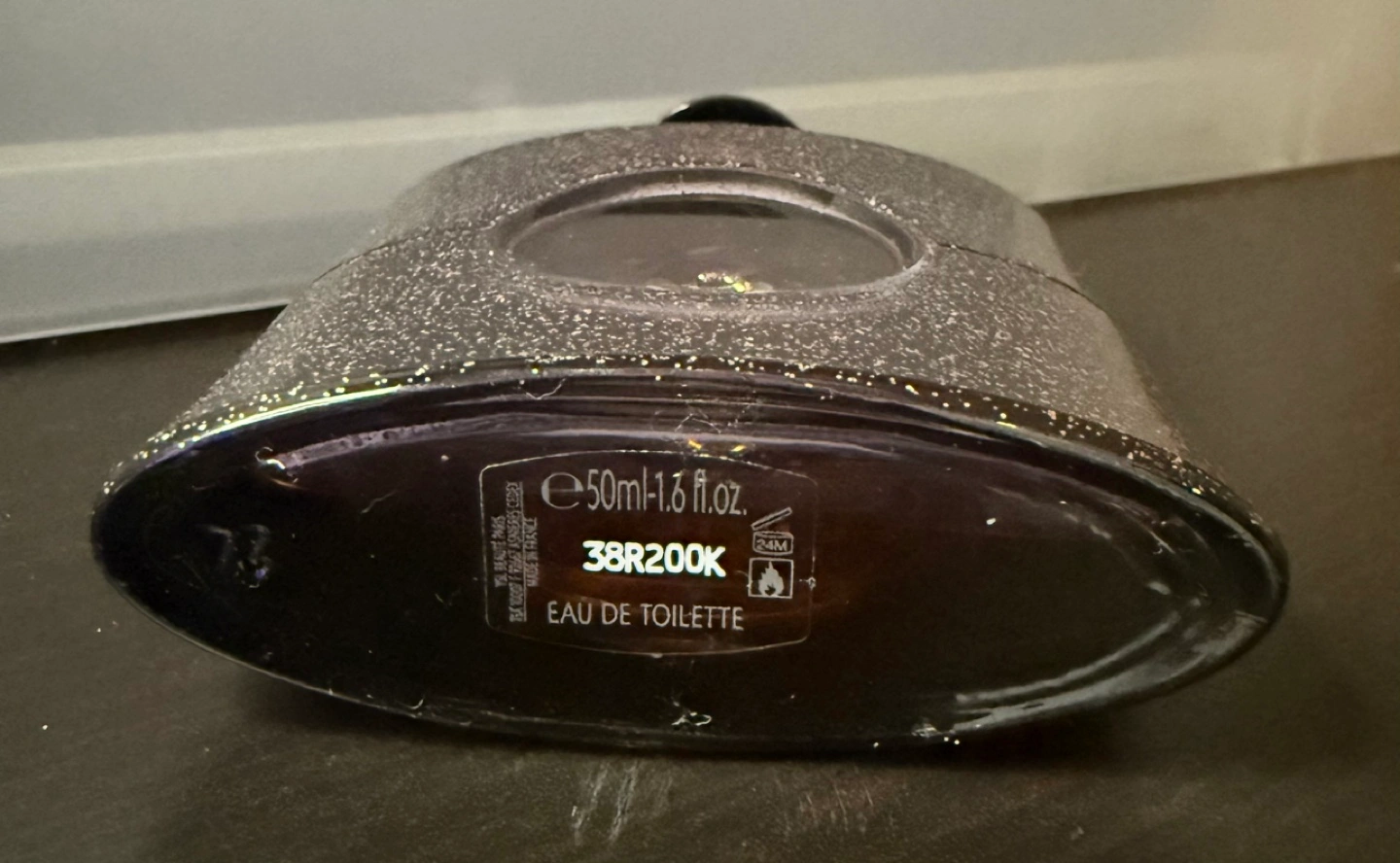 50ml Eau de Toilette spray. Dark purple bottle with glitter. Pre-owned. More than 50% left