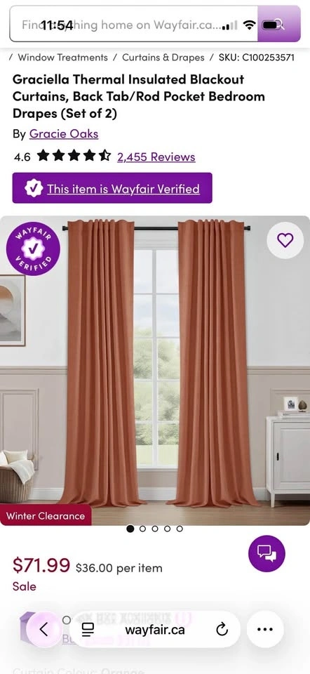 New Orange Blackout Curtains (2 Panels)