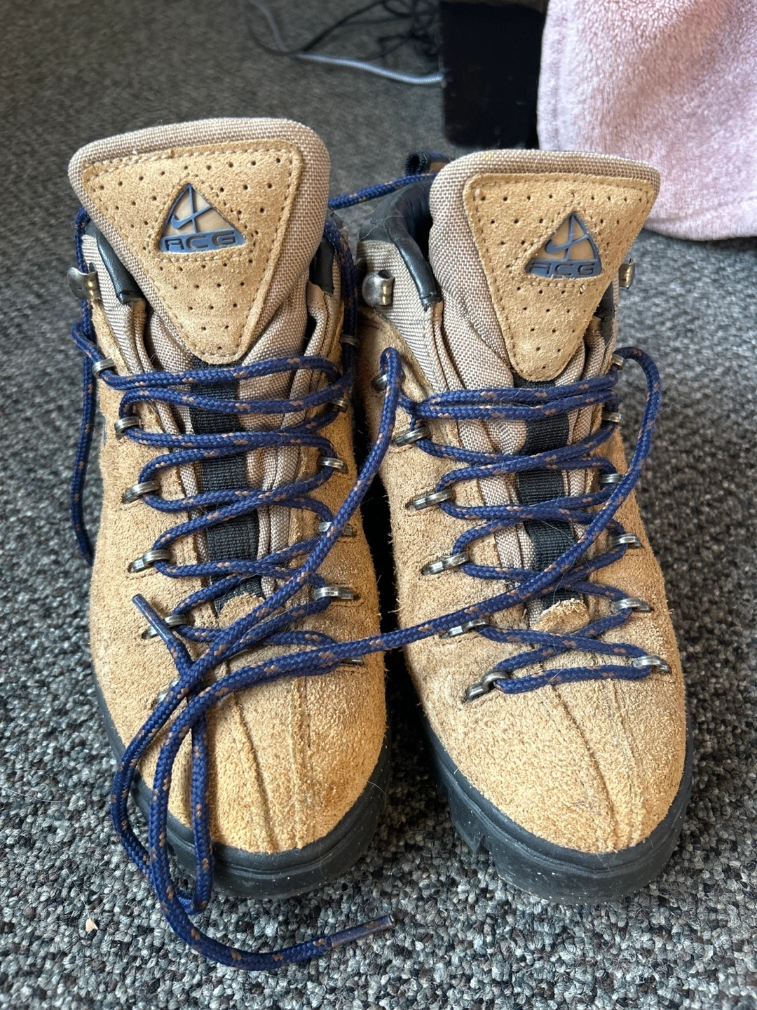 Selling a pair of Nike ACG hiking boots size 6! These boots are in great shape and ready for your next adventure. The soles have a trail compound for great grip. Perfect for hitting the trails!