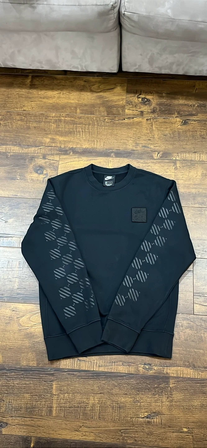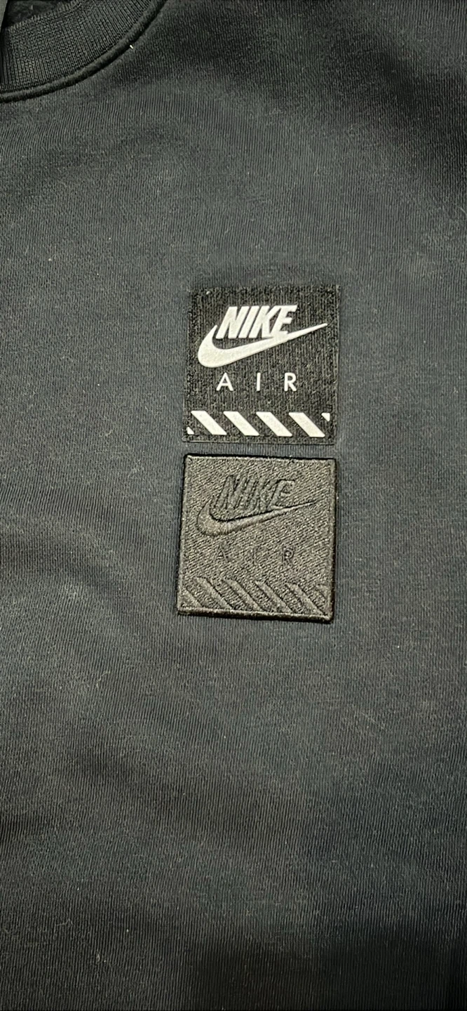 71Selling a Nike Air crewneck in size men’s XS. It's black with a customizable design patch. Perfect for a casual, sporty look!