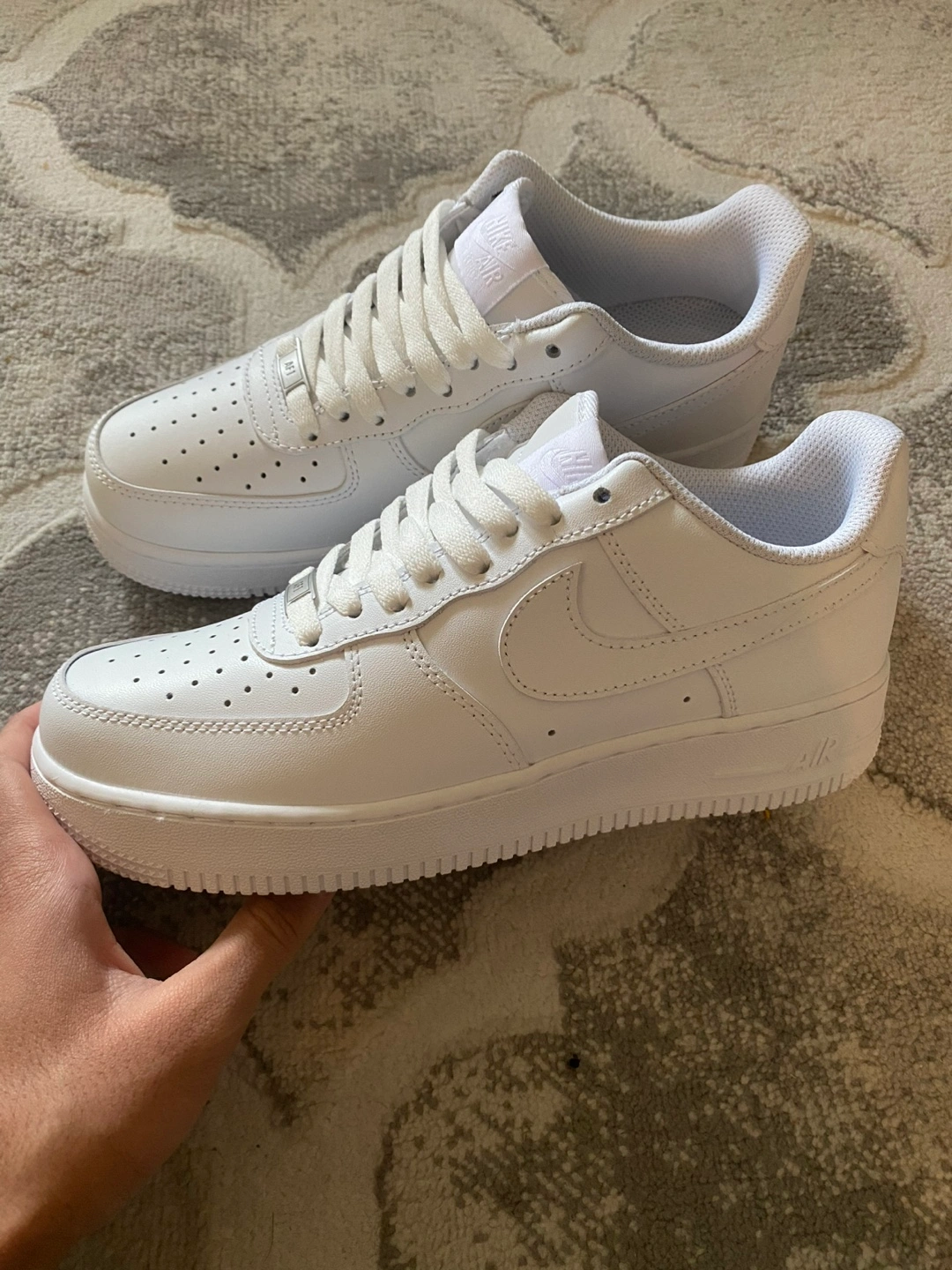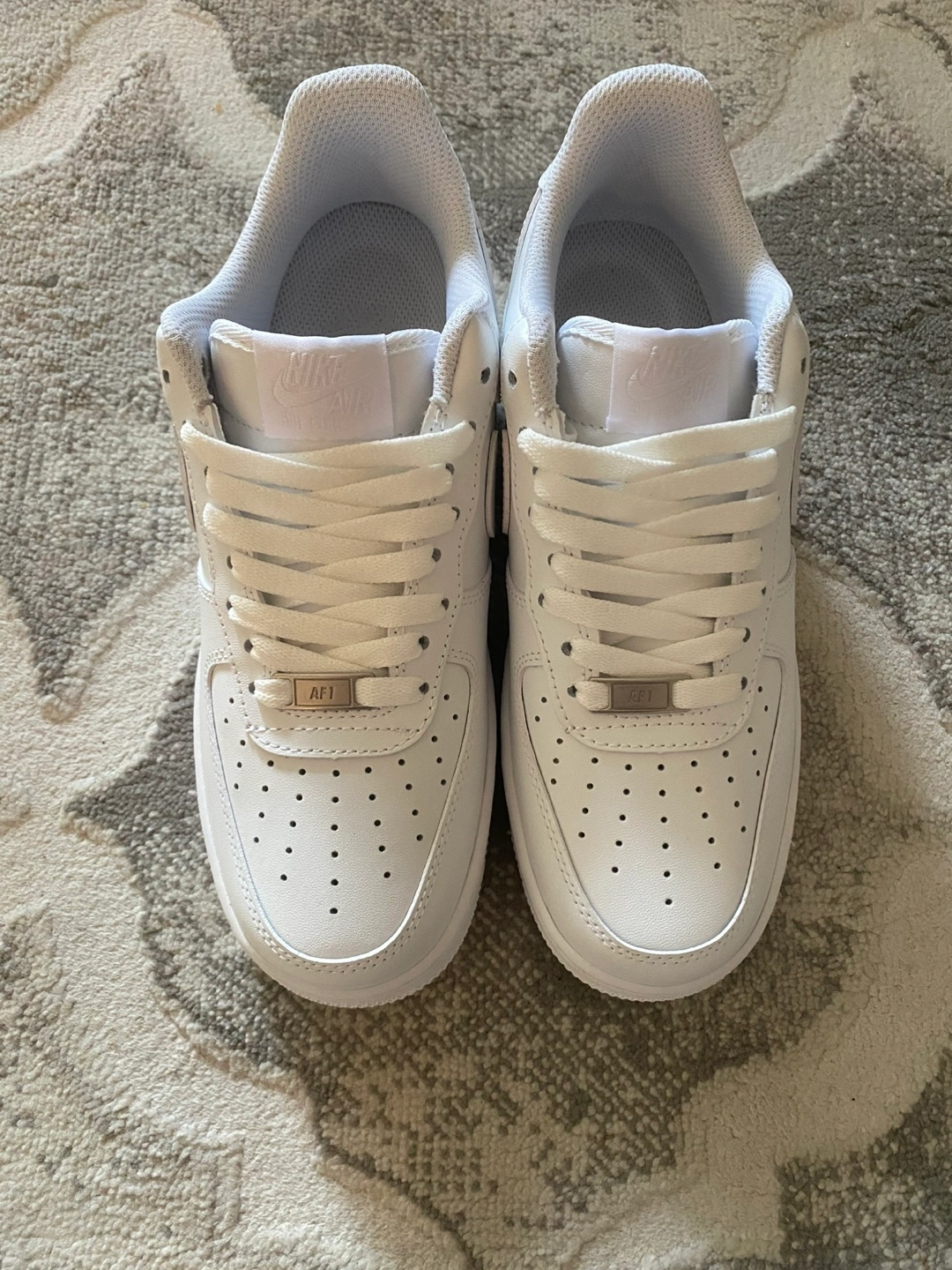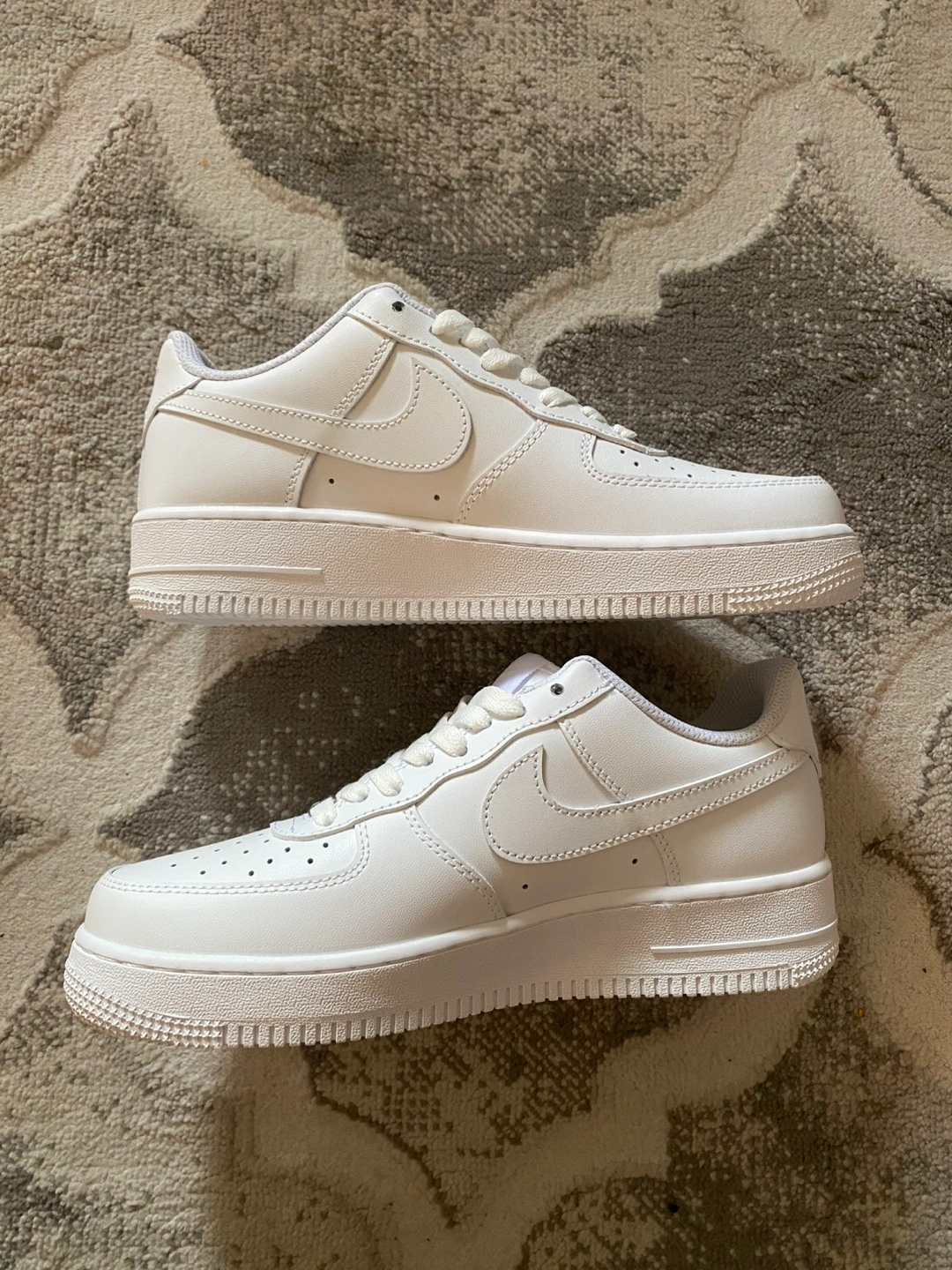 Women's and Men’s Nike Air Force 1 '07. All white leather sneakers. Many sizes available . Minimal wear. BUY NOW!!! BRAND NEW