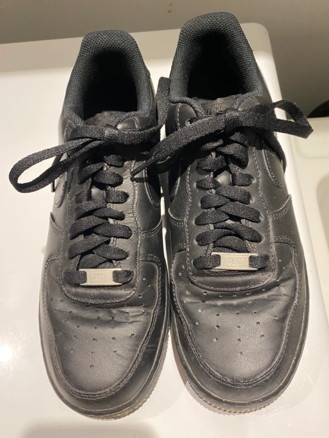 98Selling a pair of Nike Air Force 1 '07 in black. They are size 8.These sneakers are a classic and versatile addition to any wardrobe! They show some signs of wear, as pictured.