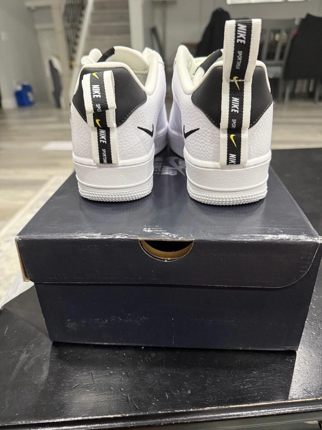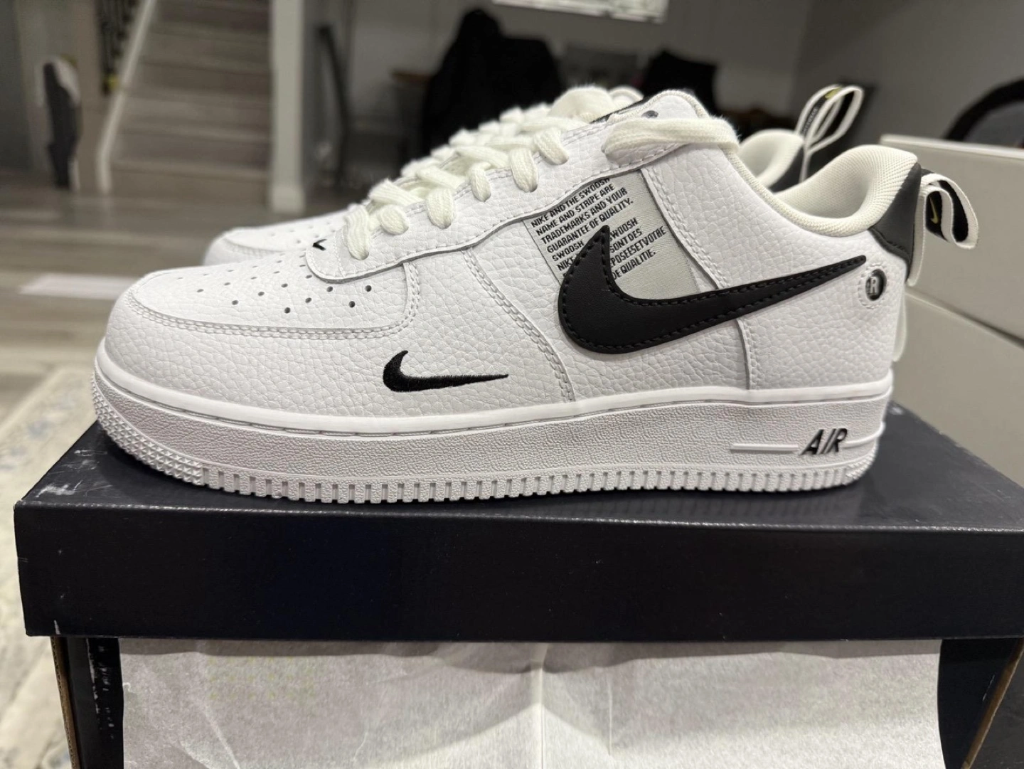 5Brand new Nike Air Force 1 '07 LV8 Utility sneakers. White leather upper, black swoosh. Size 8 to 11 Comes in original box. For more information plz call me on 6477027651 thanks
