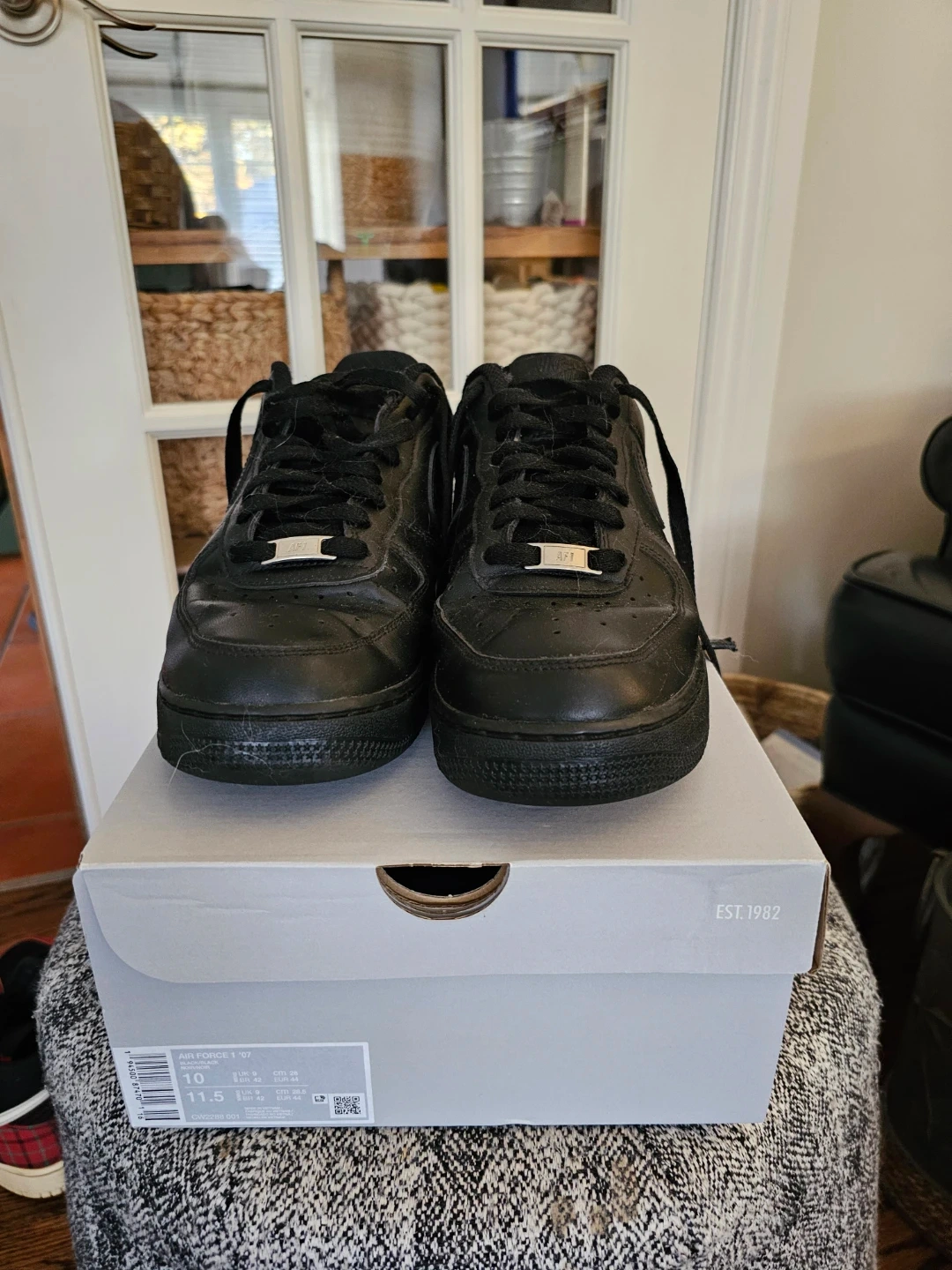 10Selling a pair of Nike Air Force 1 '07 sneakers in black, size 10. They come with the original box. These are a classic and versatile shoe!