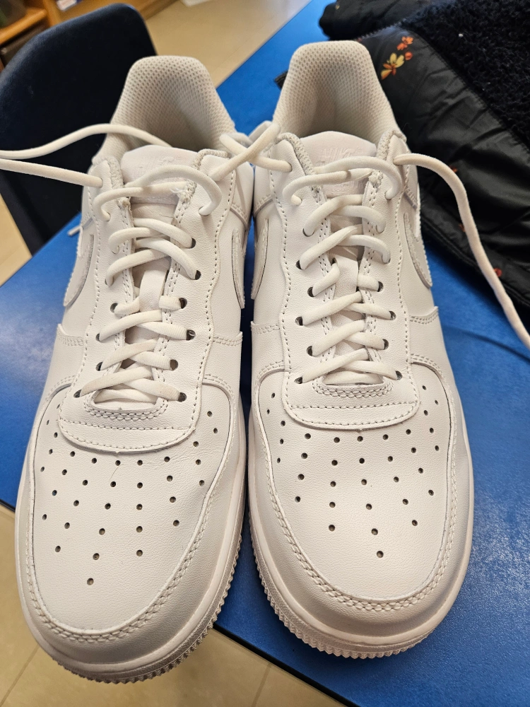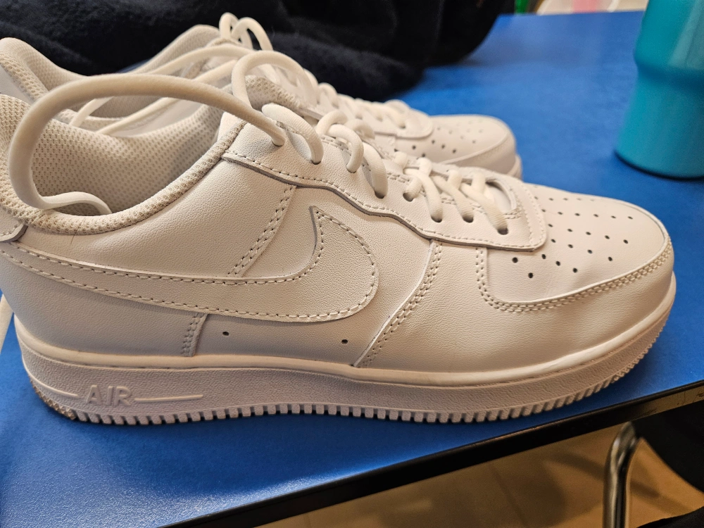 Pair of women's Nike Air Force 1 '07 sneakers. White leather upper. Classic design. worn once