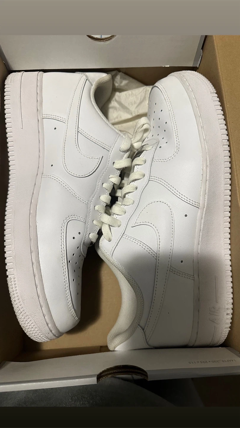 10Selling a pair of Nike Air Force 1 '07 in white. They are size 11. Comes with the original box.