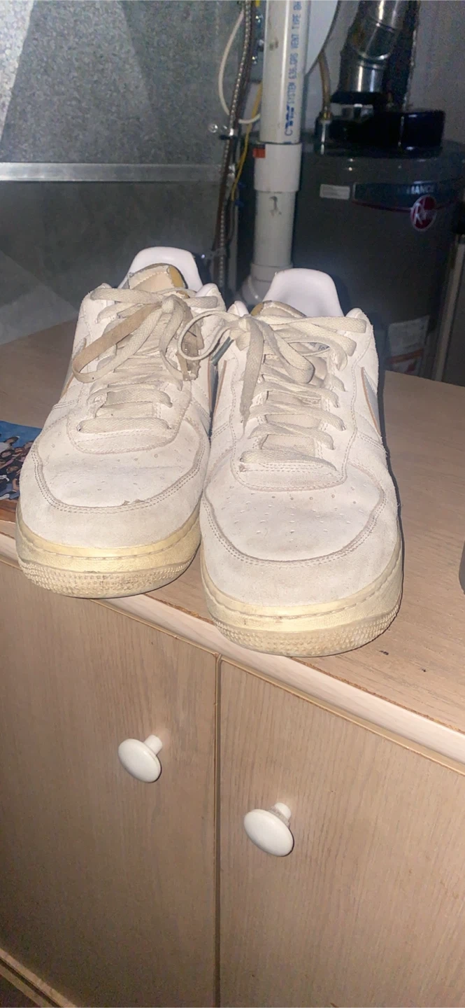 Selling a pair of Nike Air Force 1 Low sneakers. They have some wear and could use a cleaning, but still have lots of life left in them. Great for casual wear!