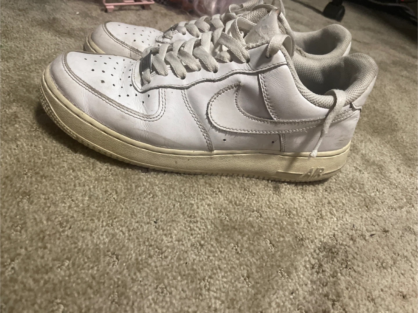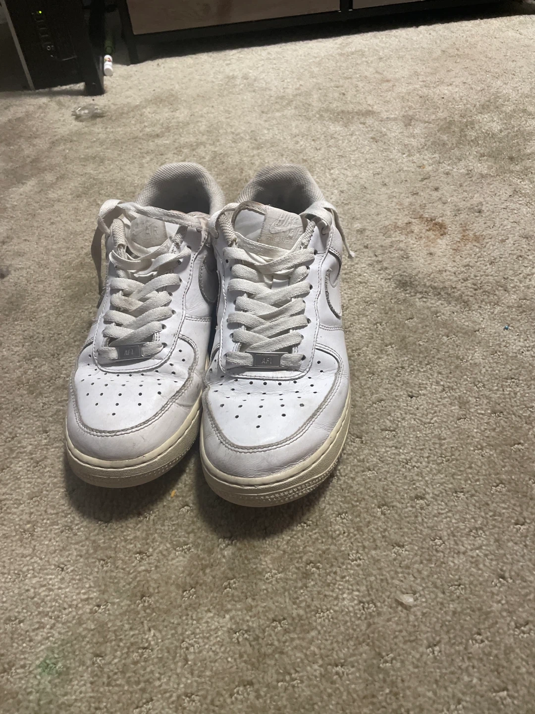 10Selling a pair of Nike Air Force 1 Low in white. They show signs of wear as pictured, but still have lots of life left! A classic and versatile shoe for everyday wear