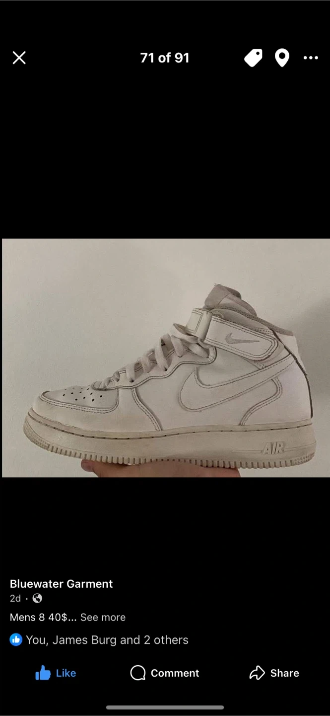 Selling a pair of Nike Air Force 1 Mid '07 in white. They are in used condition, with some visible wear. Womens size 8. Please see photos for details!
