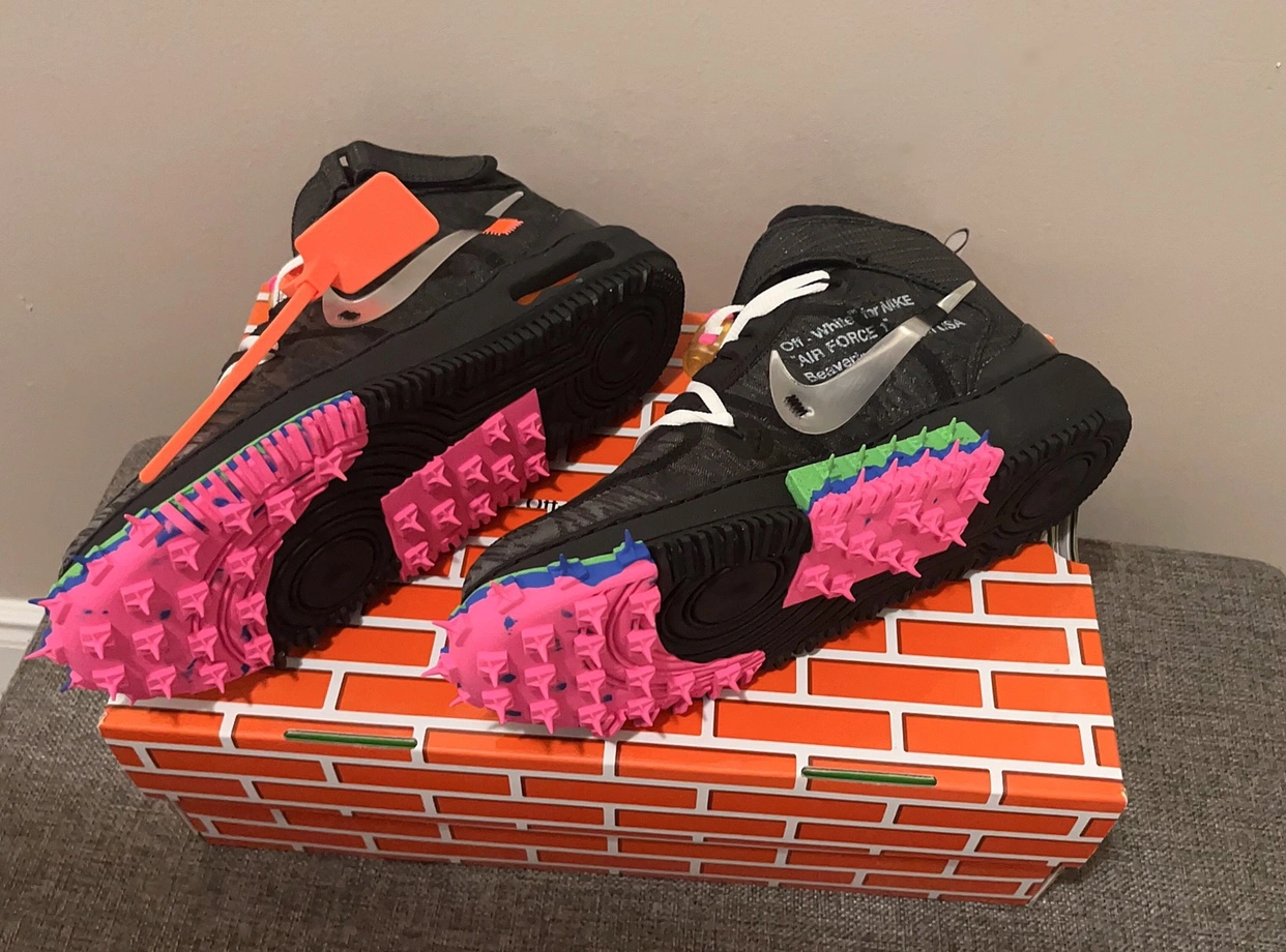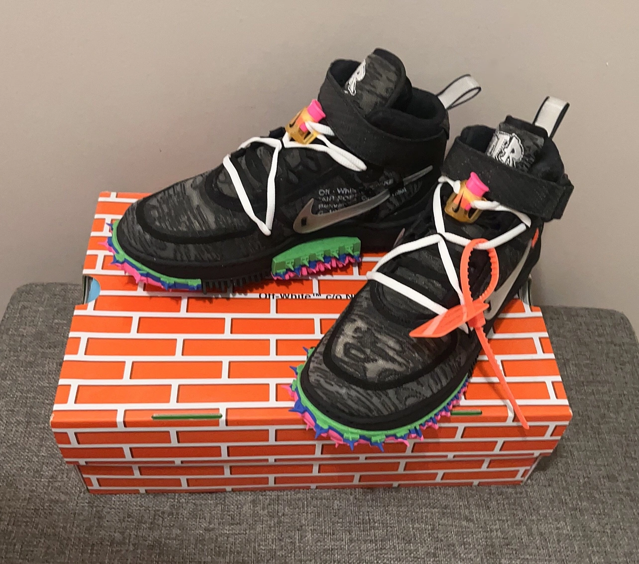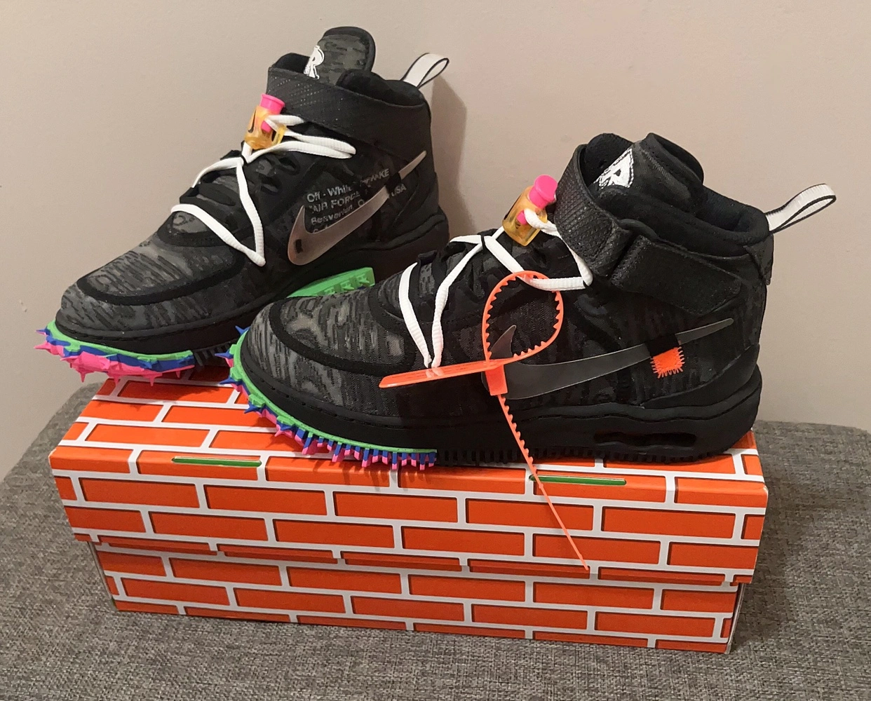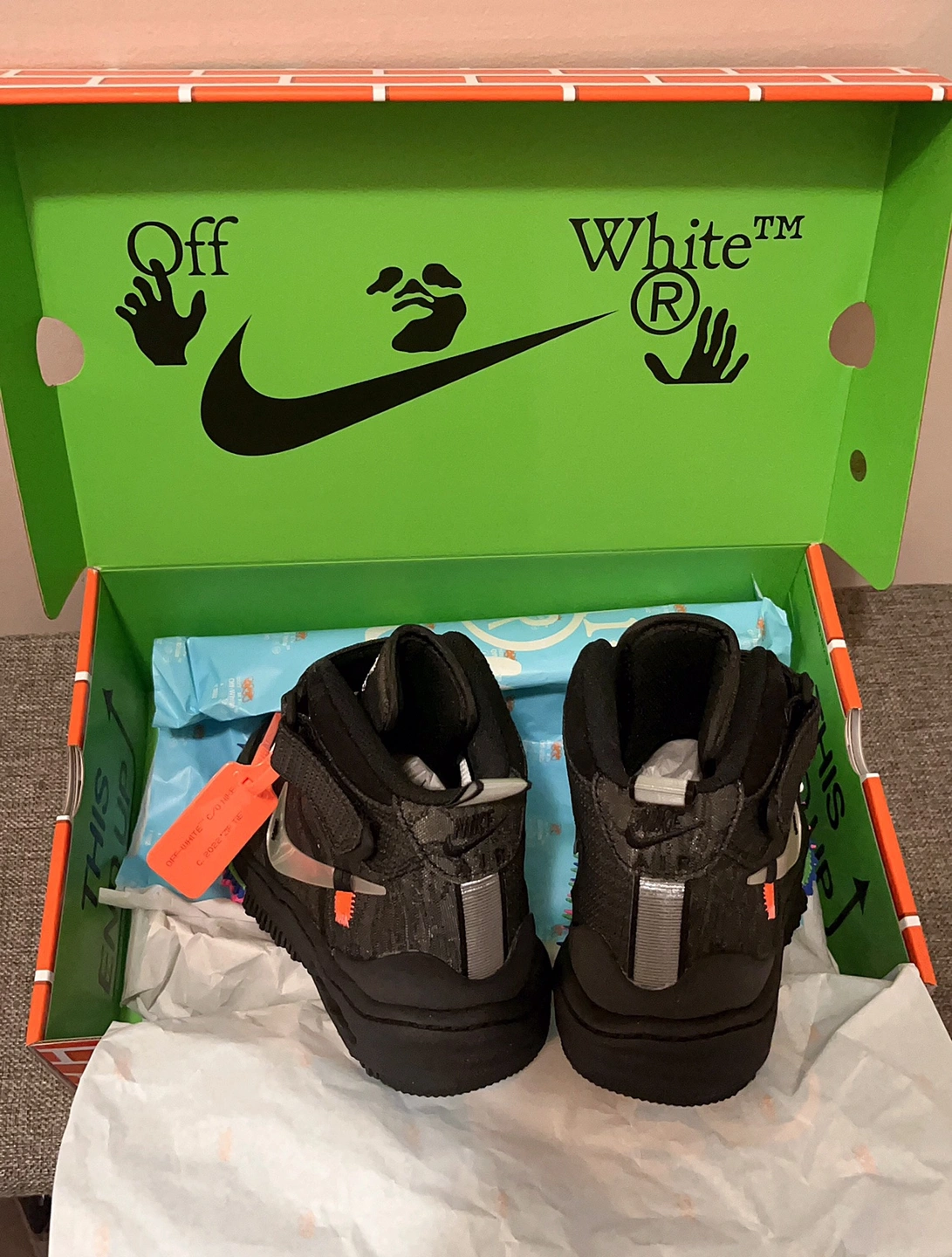 Nike x Off-White Air Force 1 Mid Black / Clear. The size is Men 8 / Women 9.5. Brand new and 100% authentic. Free pack of premium quality socks. Price firm.