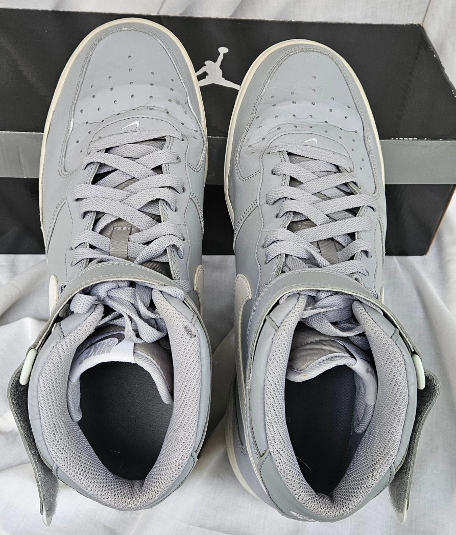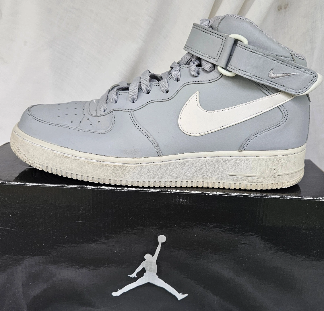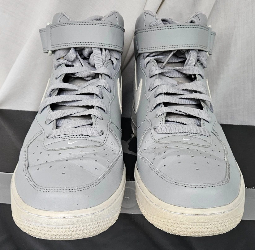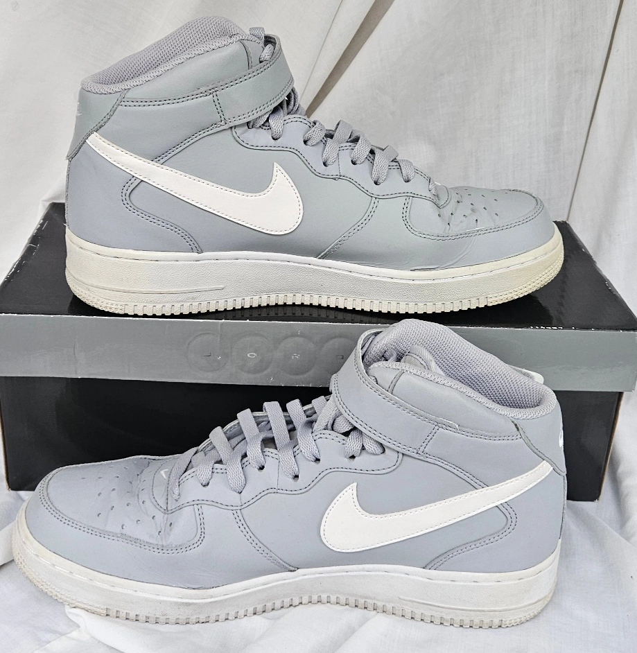1000+Nike Air Force 1 Mid Wolf Gray Men’s Shoes Size 10.5 This pair of Nike Air Force 1 Mid in Wolf Gray men’s shoes size 10.5 are in excellent cond. There are no rips, tears or stains of any kind.
