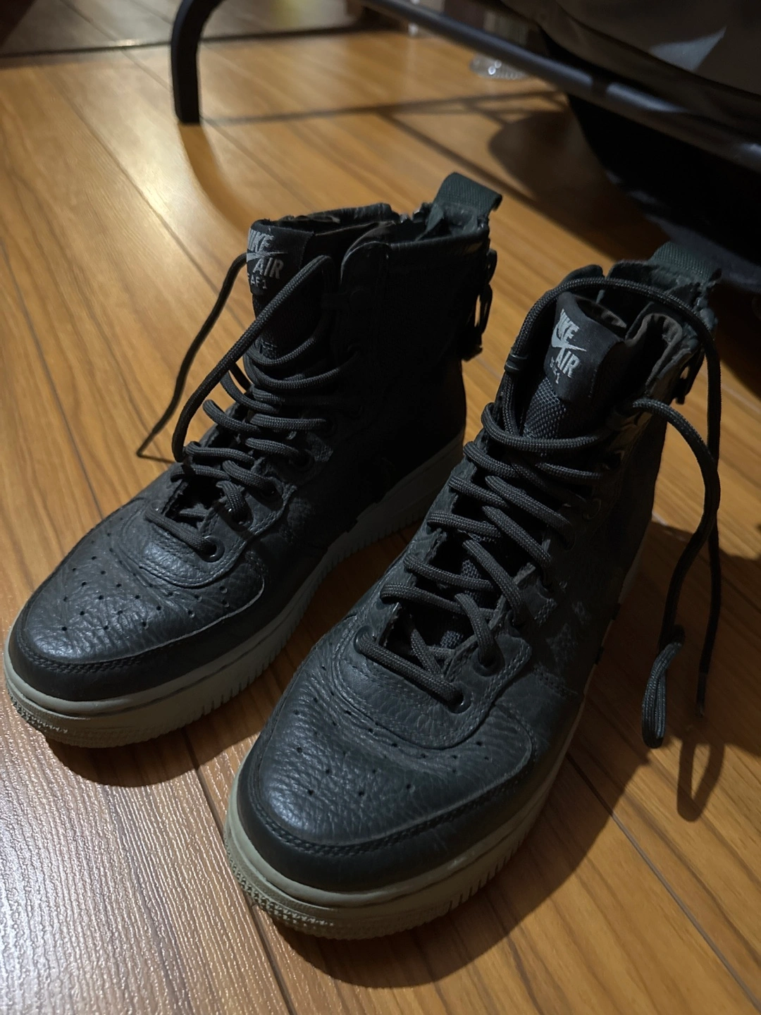 Black leather high top boots. Zip closure and laces. Good condition. Size 6