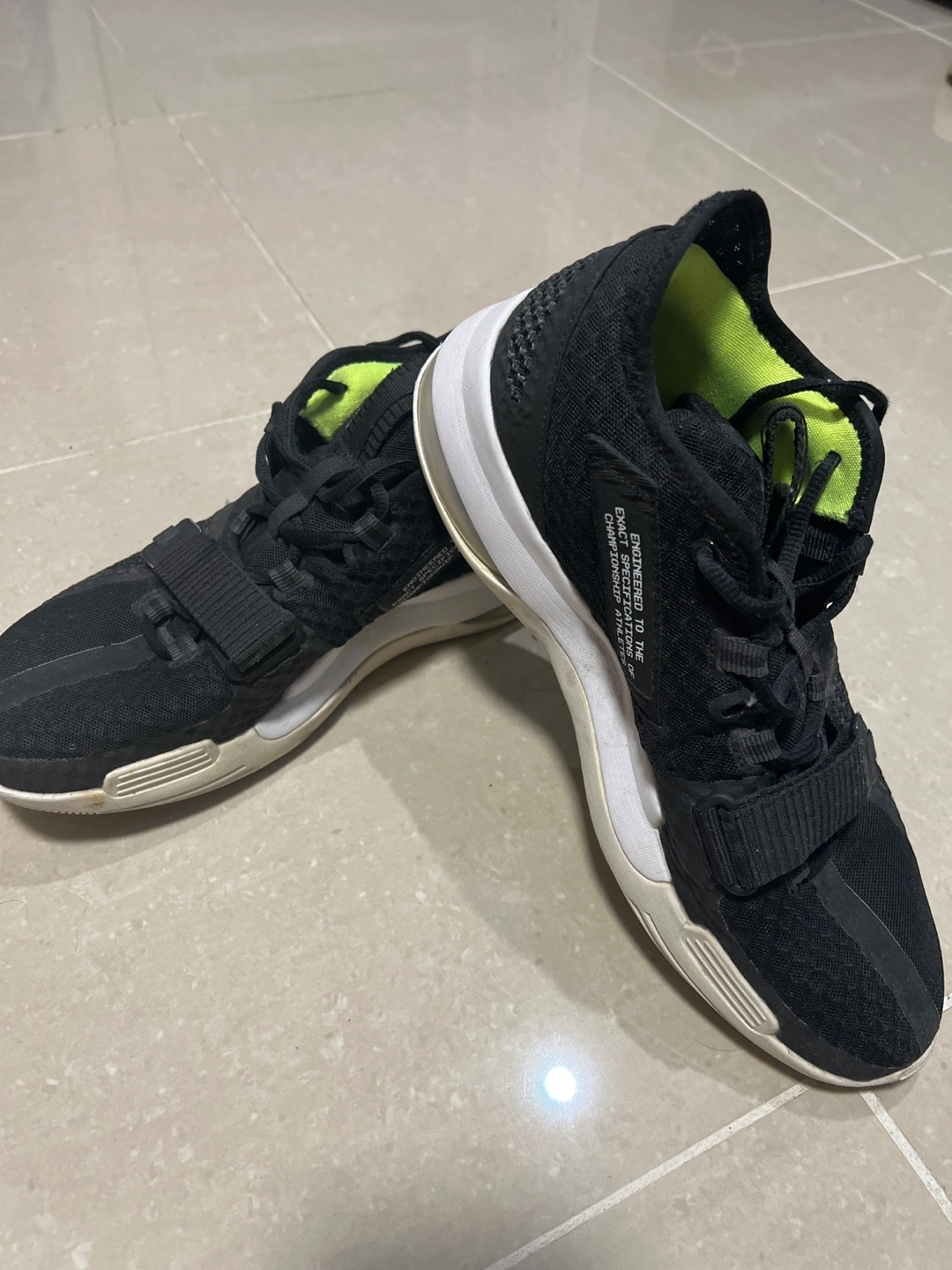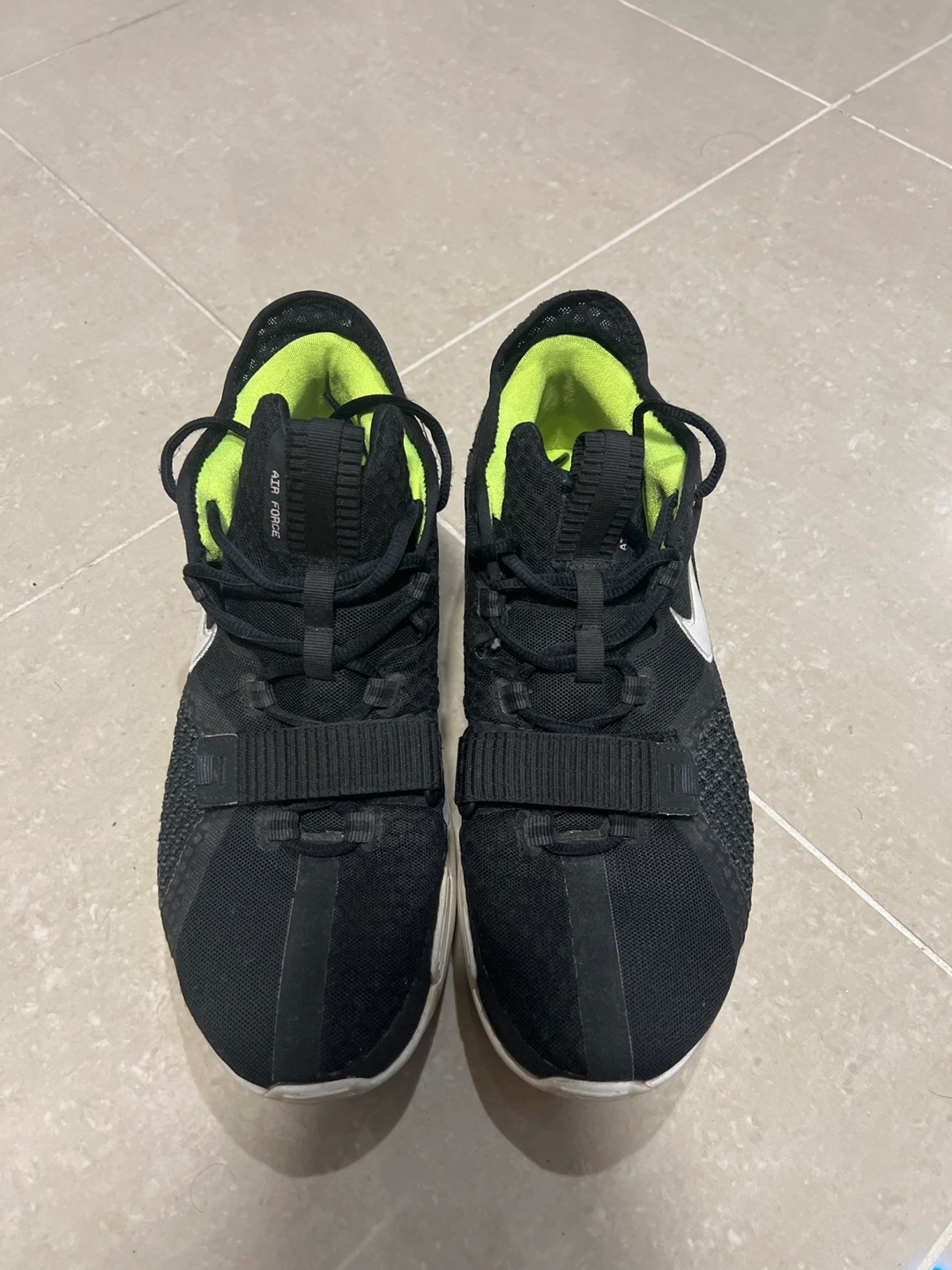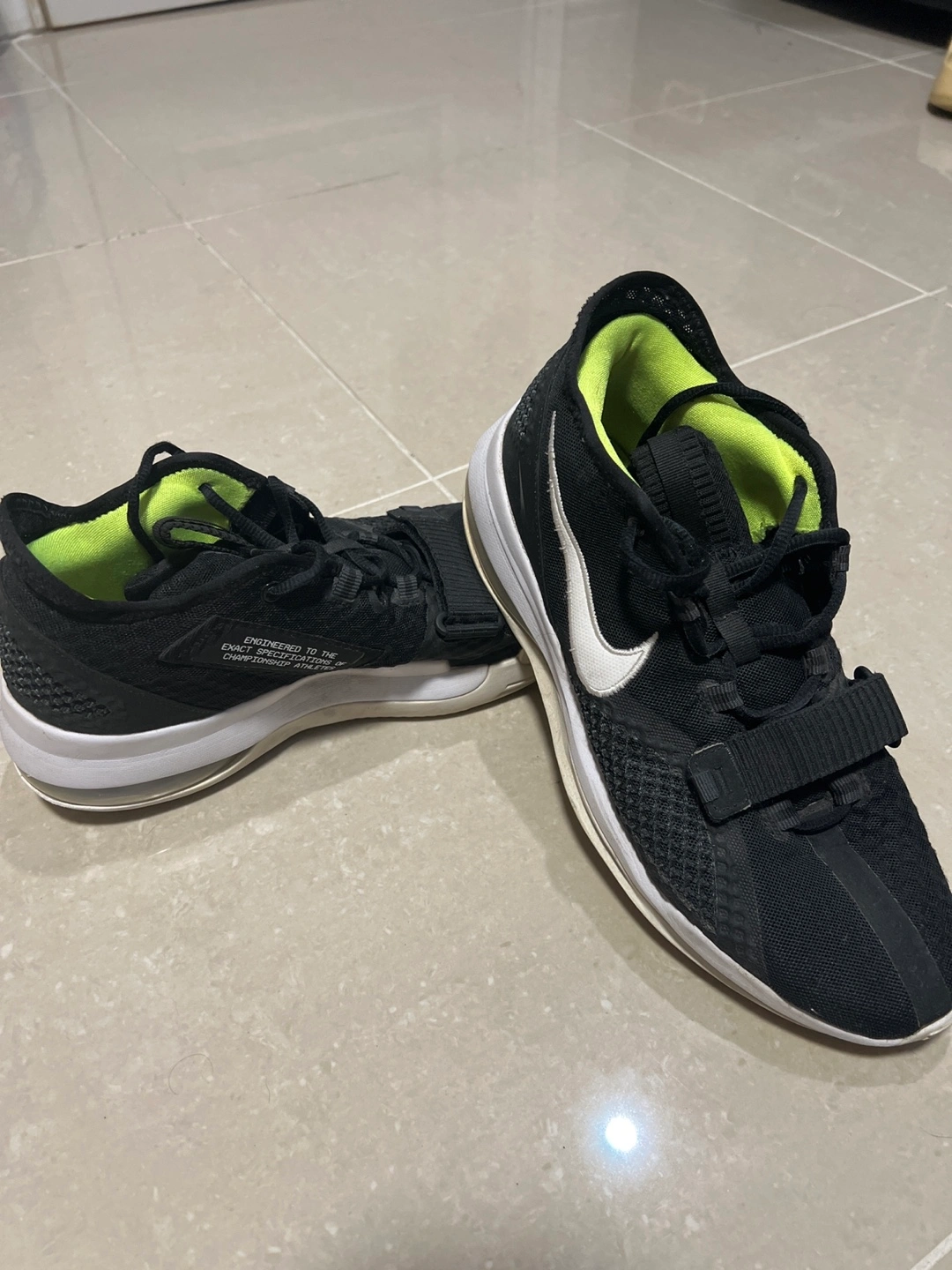 18Selling a pair of Nike Air Force 1 Utility sneakers in black. They feature a strap across the laces for a secure fit and a white swoosh on the side. These sneakers are in good condition and ready for a new home!