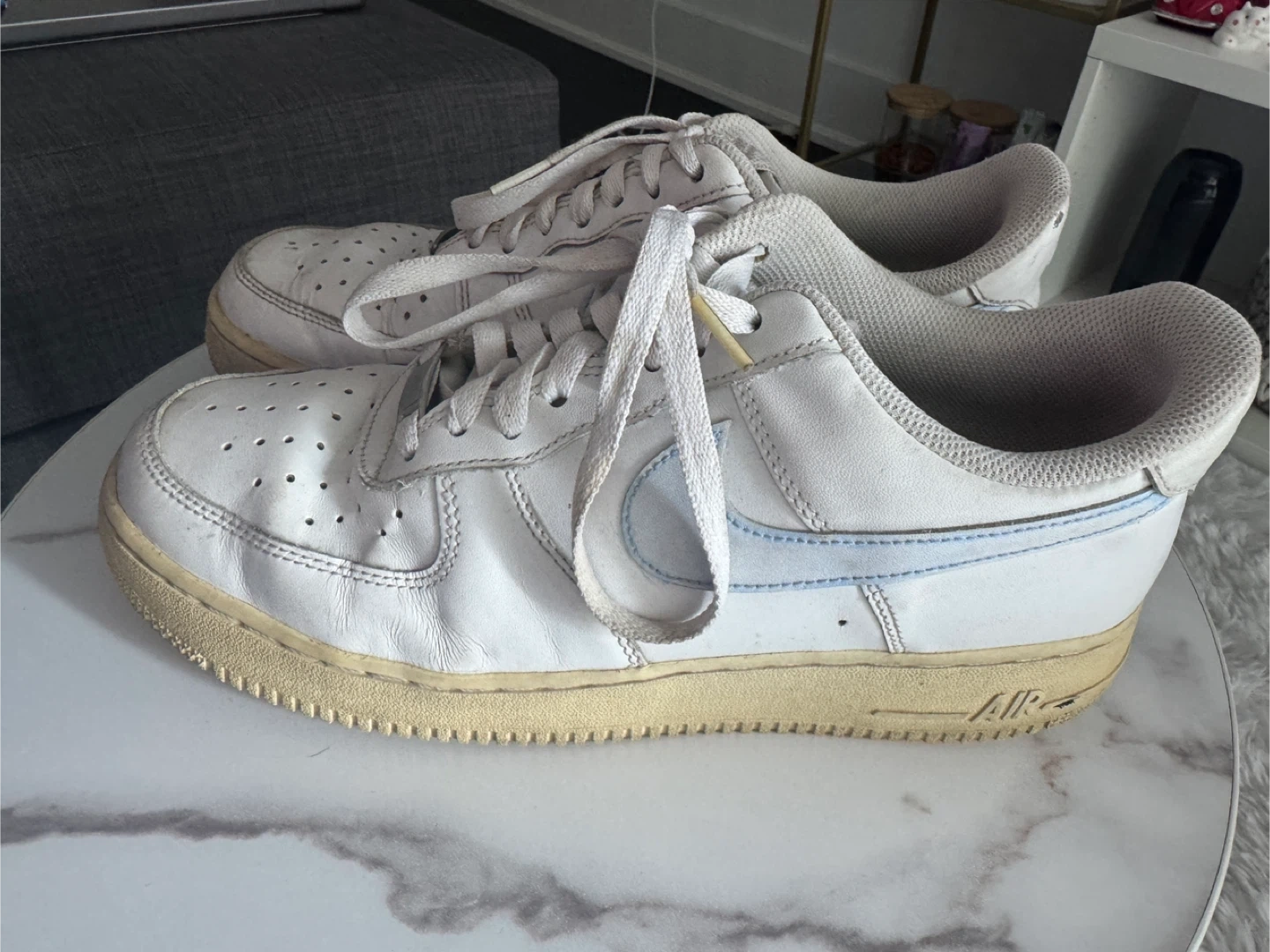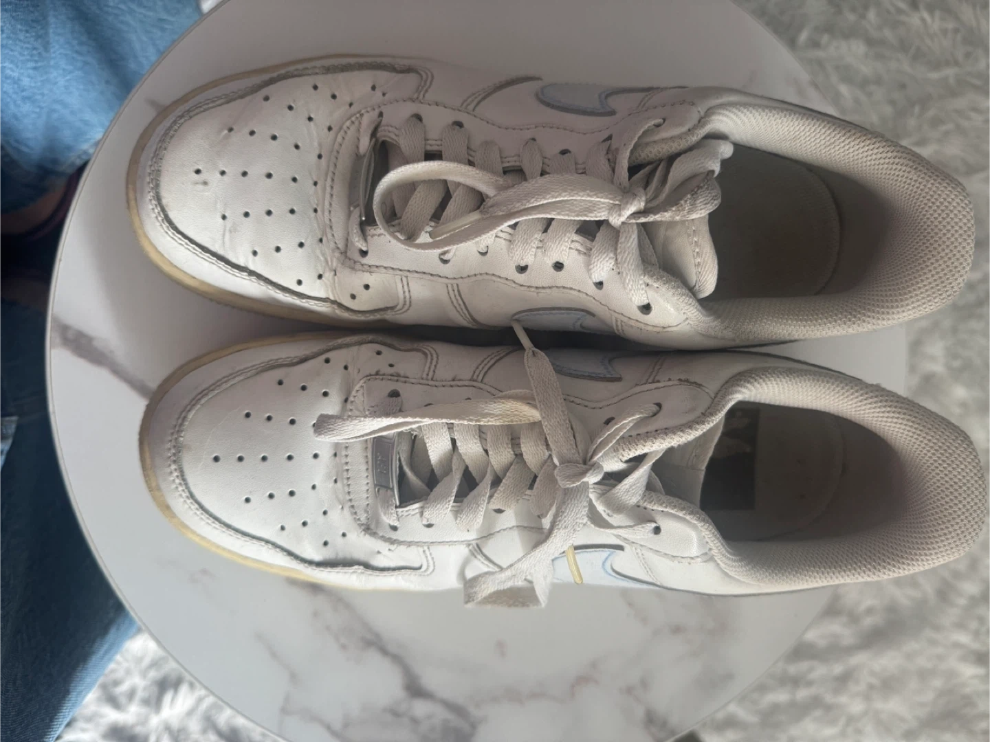 Selling a pair of Nike Air Force 1s in white. They are in used condition, as shown in the photos. The size is 10.5 US.