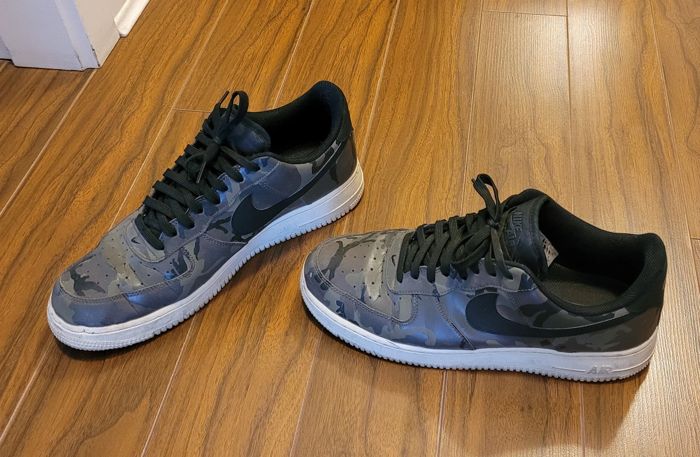 33Nike Air Force1's. Camo green, reflective with light flash (2nd pic). Originally bought in Mexico City. Size tag looks like it said 11.5 (US), but I'mma 12 and they fit. Available for pick-up. Make any offer By text 6043194226