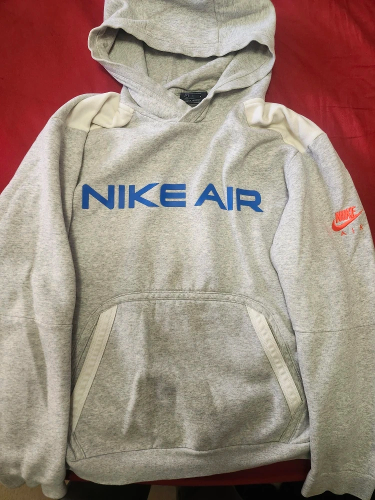 Buy & SellNike Air Grey HoodieNike Air Grey Hoodie$53Selling a Nike Air hoodie in grey! It features the Nike Air logo in blue on the front and a smaller embroidered logo in orange on the sleeve. SizeLargeBrandNike0 chats·0 favorites·2 viewsSELLERverifiedBrandonForest Grove600 reviewsWHERE TO MEETforest grove