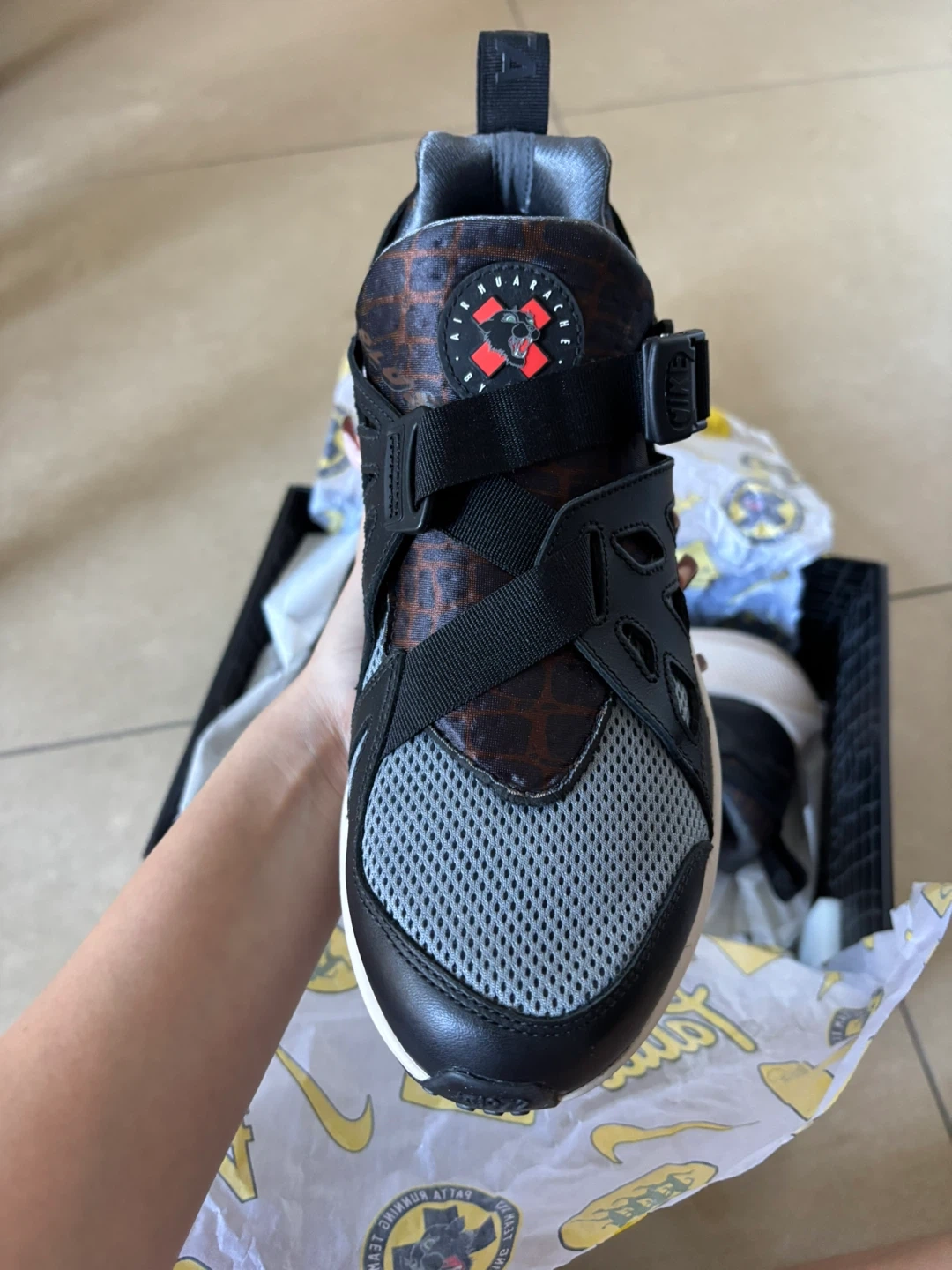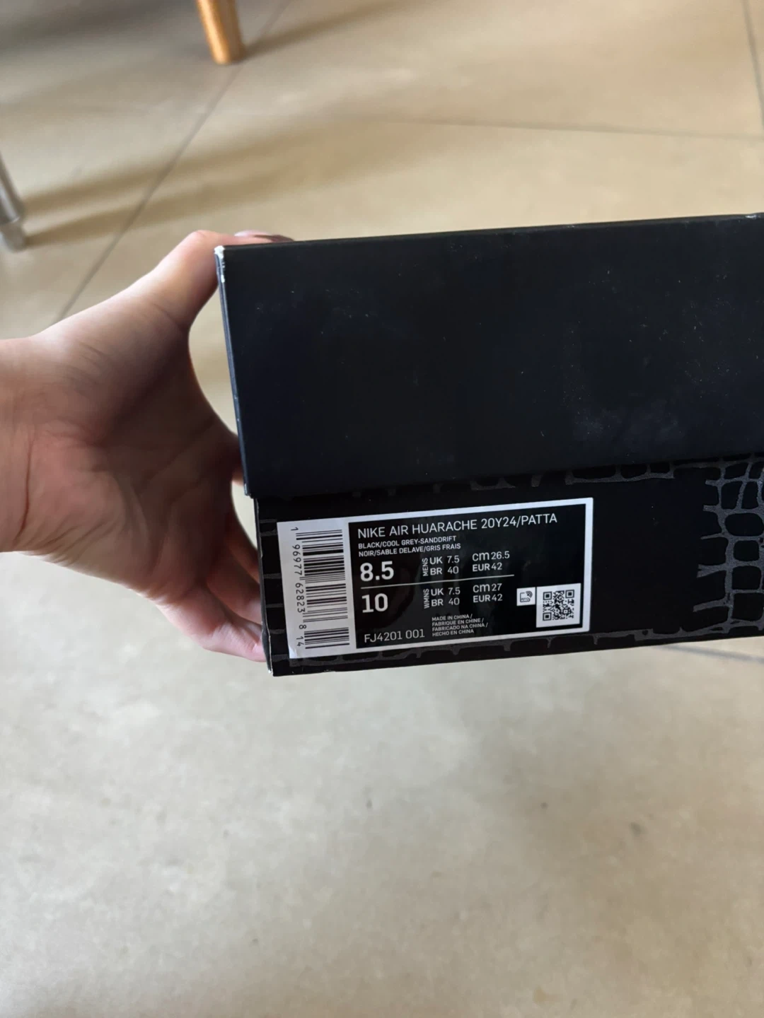 10Selling a pair of Nike Air Huarache 20Y24/Patta sneakers in size 8.5. They come with the original box. The colour is cool grey/sanddrift/dark obsidian. These are in great condition and ready for a new home