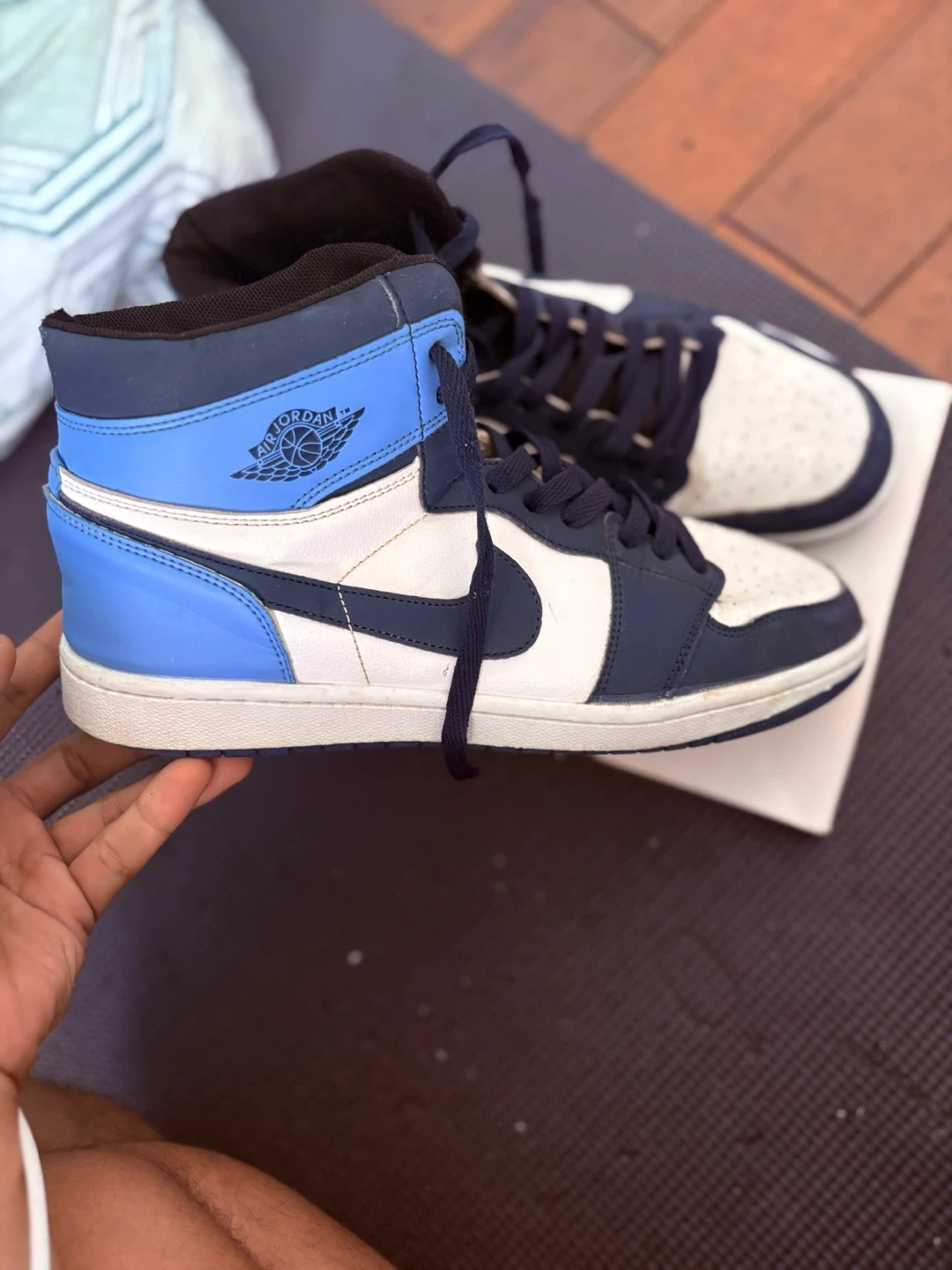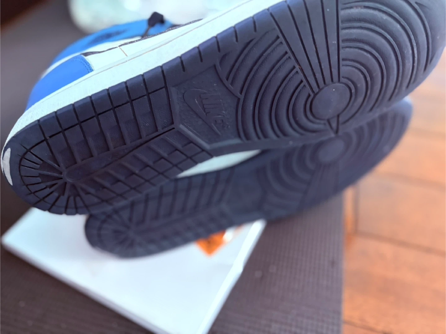 60Selling a pair of Nike Air Jordan 1 High sneakers in a stylish blue and white colourway! These iconic shoes are in great condition and ready for a new home. Perfect for adding a touch of classic style to your wardrobe