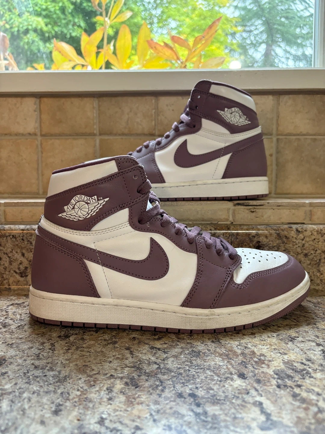 81Jordan 1 High Mauve Size 9.5 Authentic No box Used lightly no starloss 100$ obo Located in Nanaimo BC add for ship