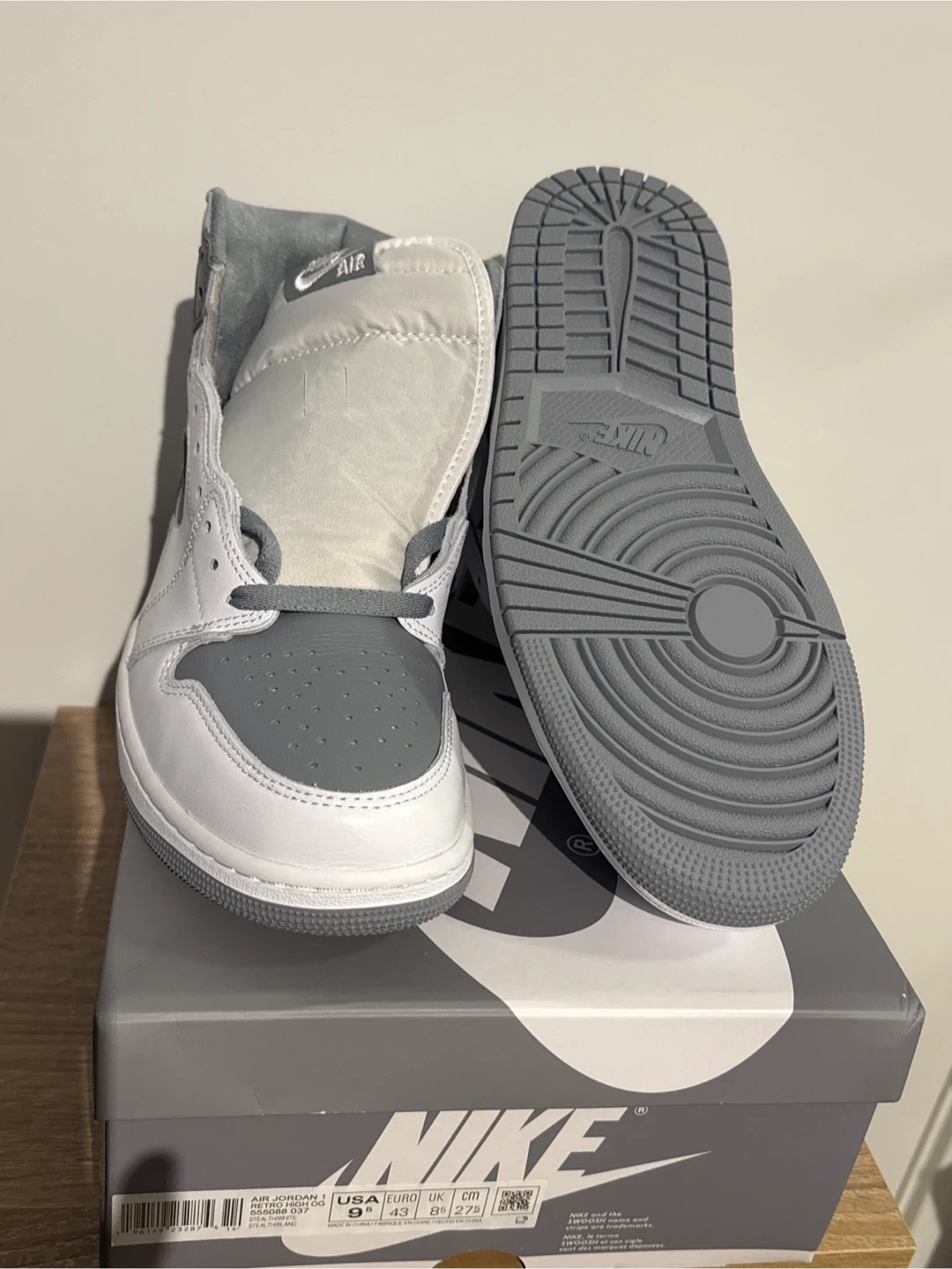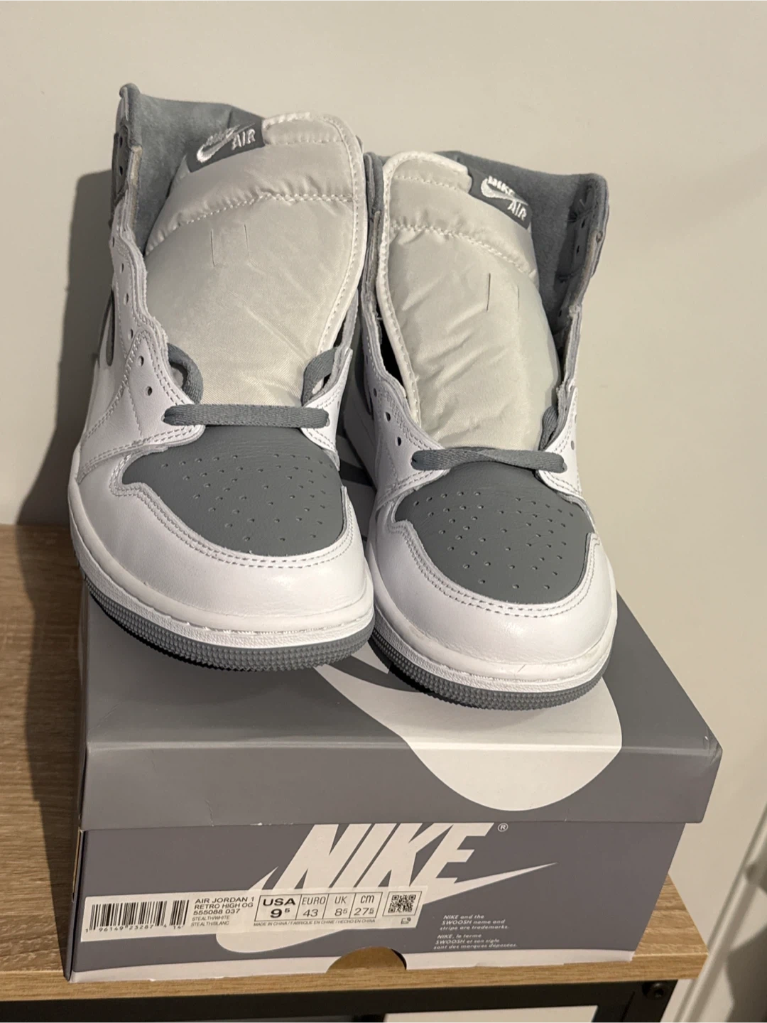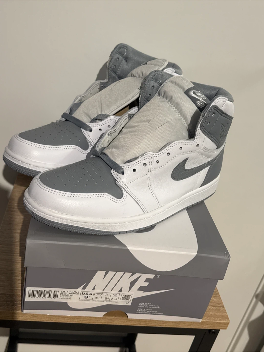 27Selling a pair of Nike Air Jordan 1 High in the Smoke Grey colourway! They are in great condition and come with the original box. The size is a US 9.5, EUR 43. Perfect for any sneakerhead!