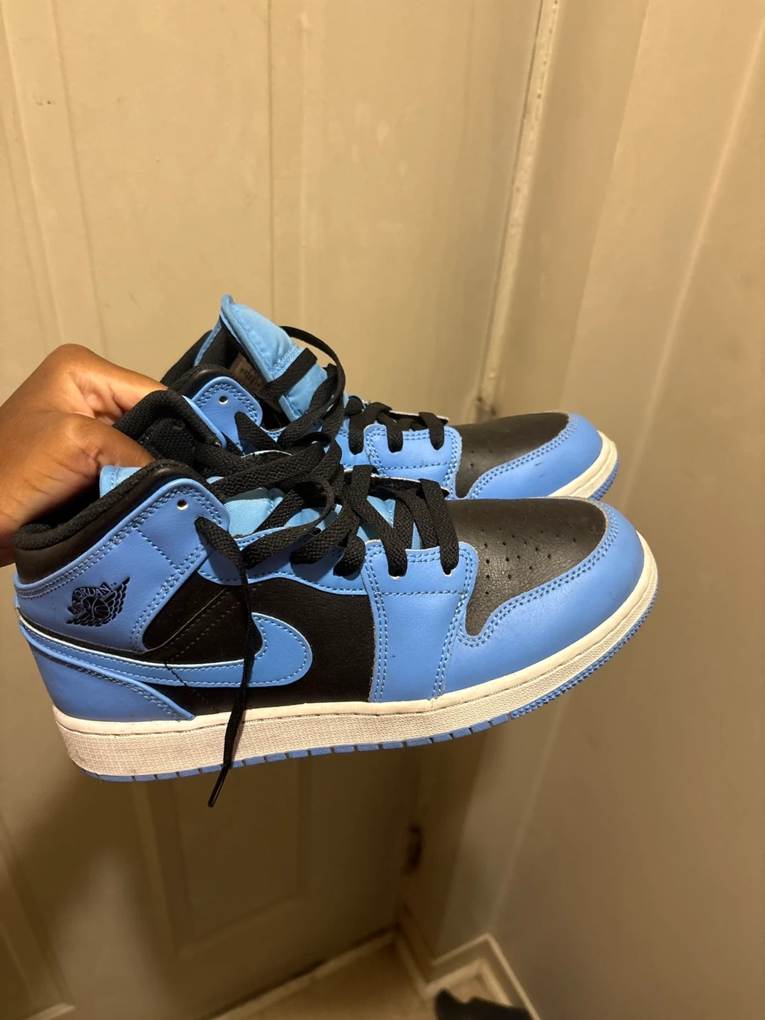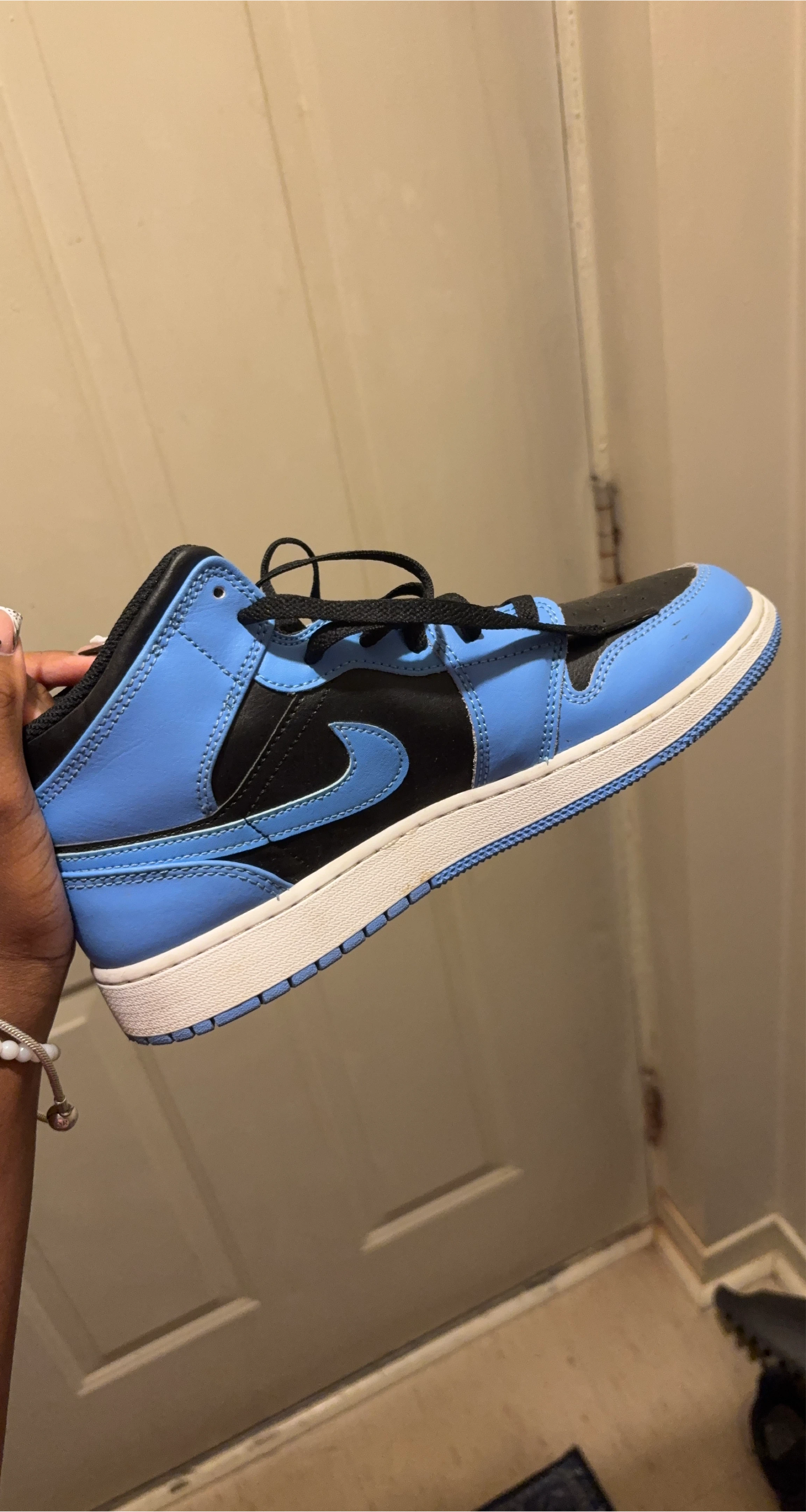 Selling a pair of Nike Air Jordan 1 Lows in the University Blue and Black colourway! The shoes are in great condition and are a US size 8. They feature a classic design with the iconic swoosh. These are sure to turn heads!