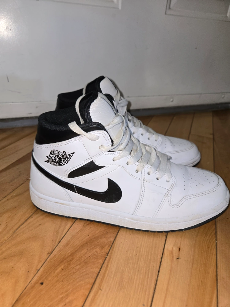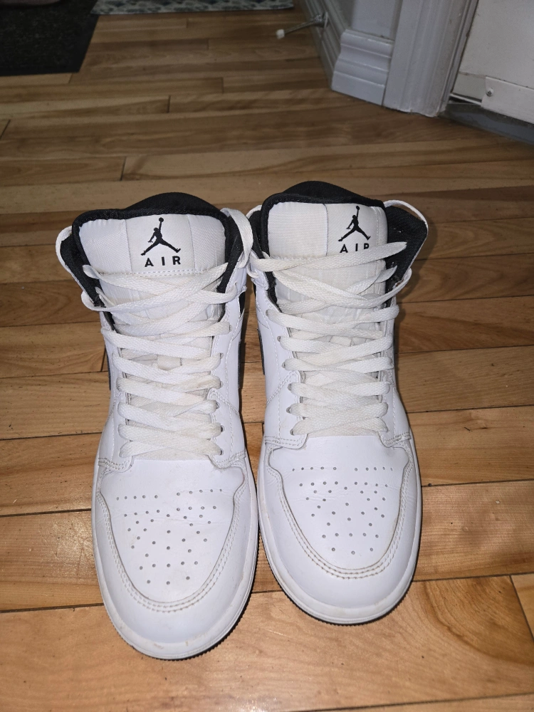 10Pair of white and black Nike Air Jordan 1 Mid sneakers. bought from footlocker for $165, but it is small now. selling for 120