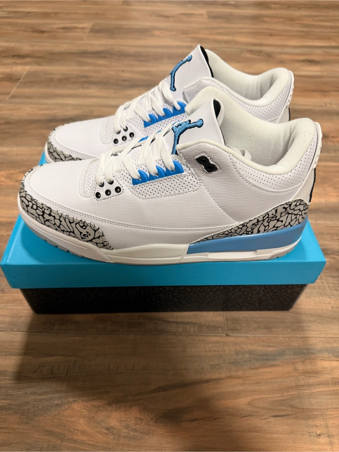 113Selling a pair of Nike Air Jordan 3 Retro UNC sneakers. These are in great condition!