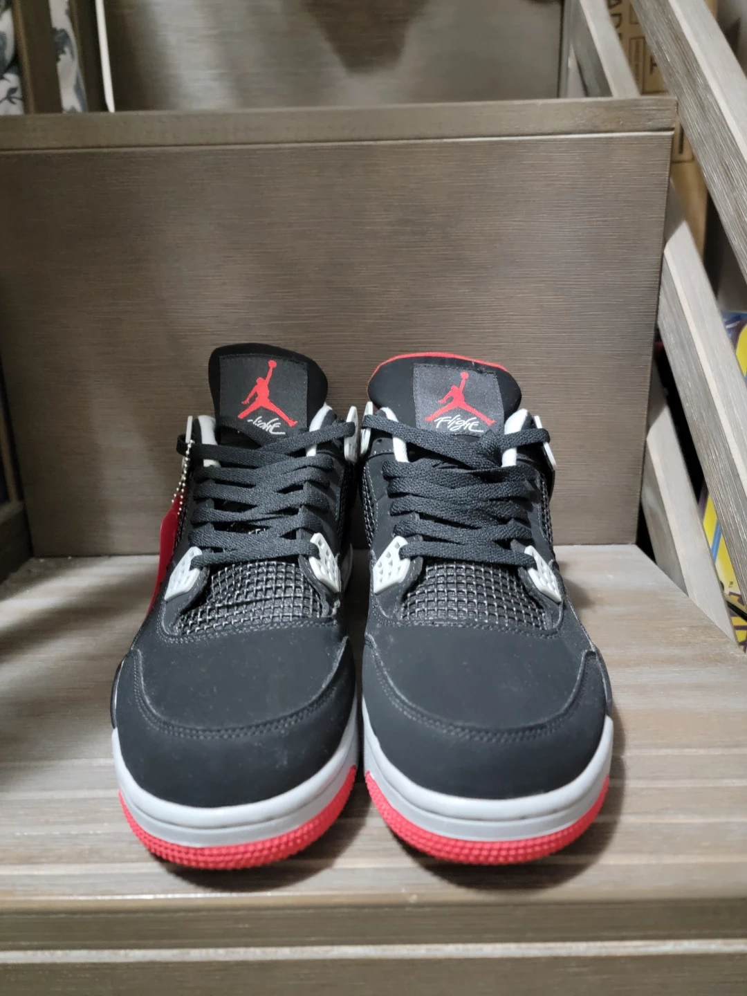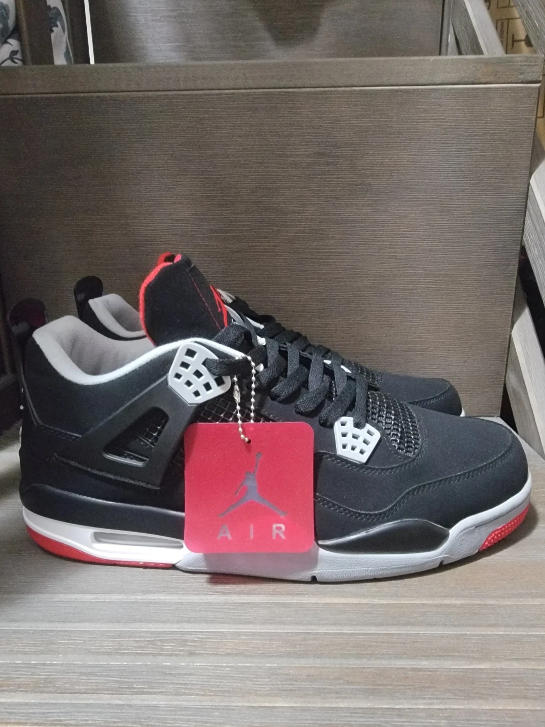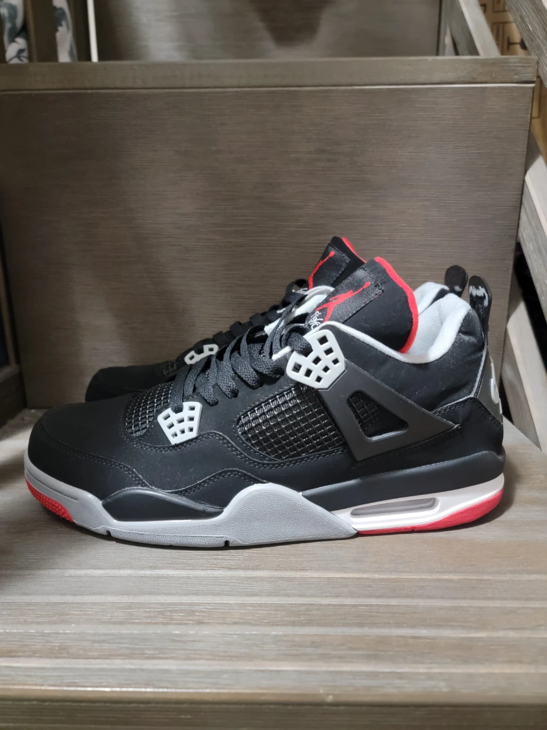 23Selling a pair of Nike Air Jordan 4 Retro Bred Reimagined sneakers! They feature a sleek black, red, white, and grey colourway. These are a classic and timeless design that would look great in anyone's collection