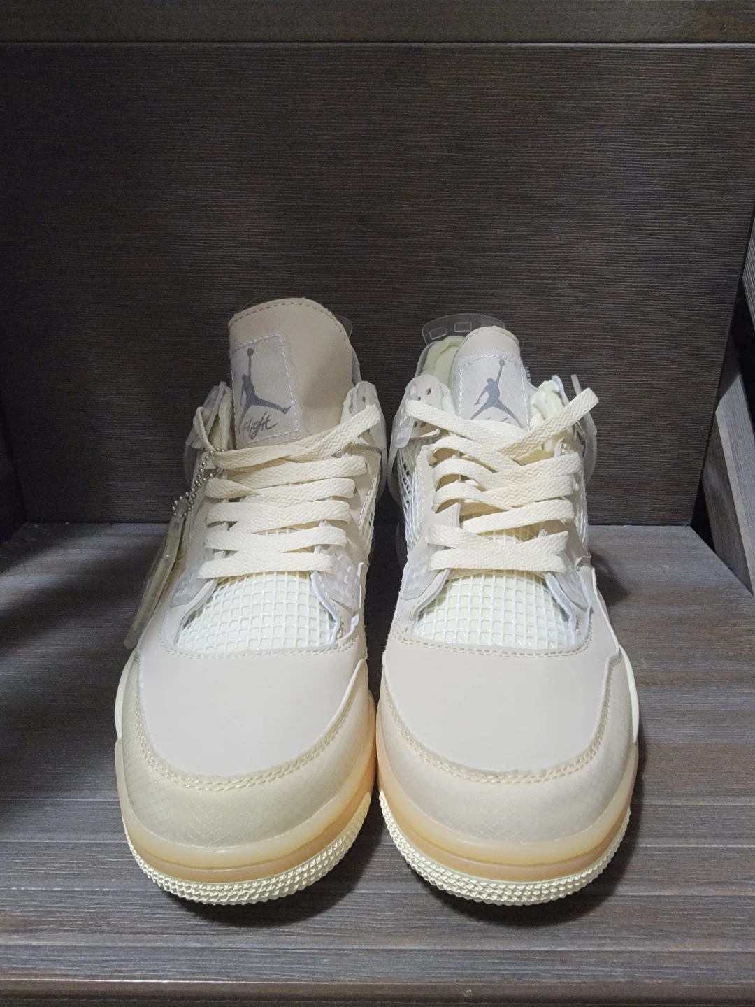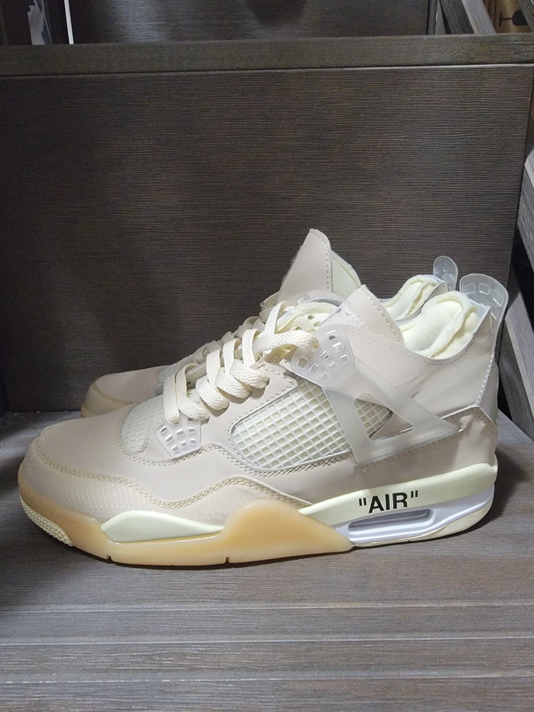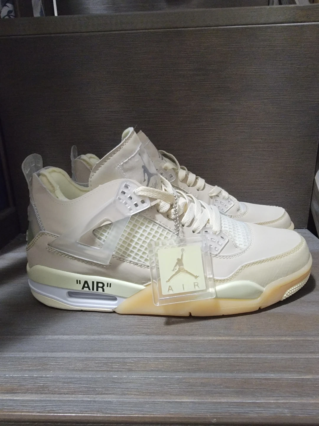 23Selling a pair of Nike Air Jordan 4 Retro Off-White Sail sneakers! They're in great shape and ready for a new home. The iconic "AIR" branding is clearly visible, and the overall design is super stylish