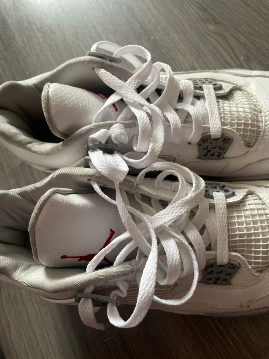 Selling a pair of Nike Air Jordan 4 Retro sneakers. They are in good condition and have the iconic Jumpman logo. Great for casual wear or adding to your collection! Never used but long time in luggage.