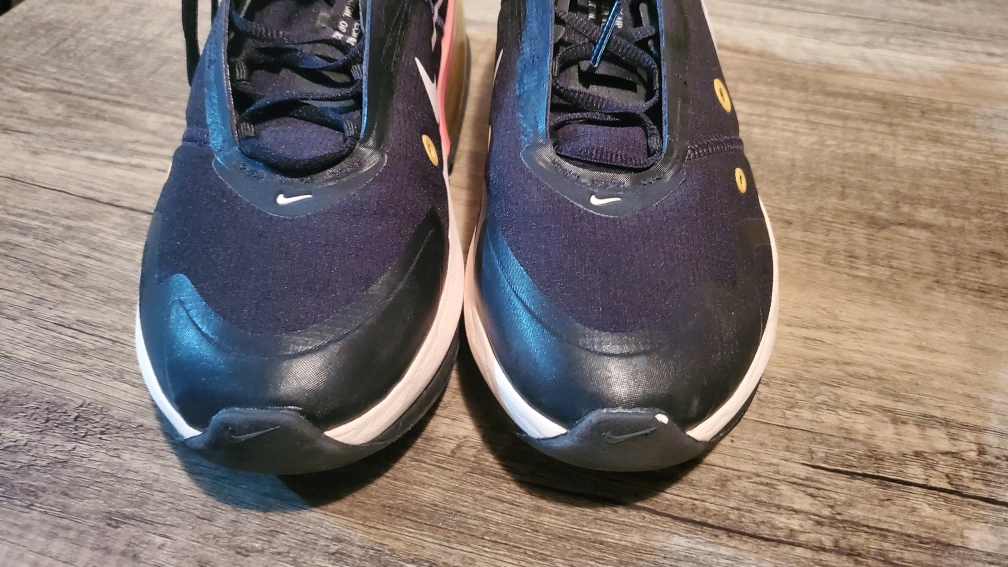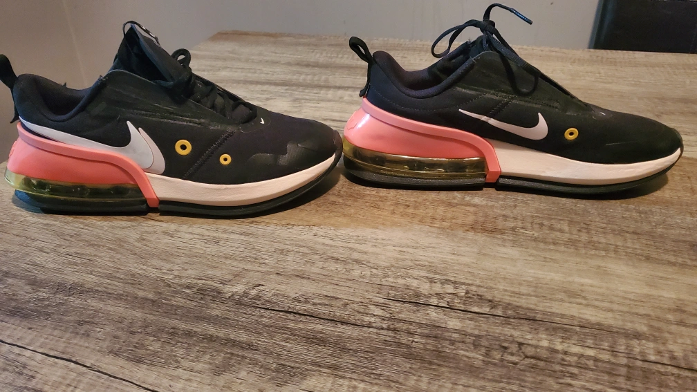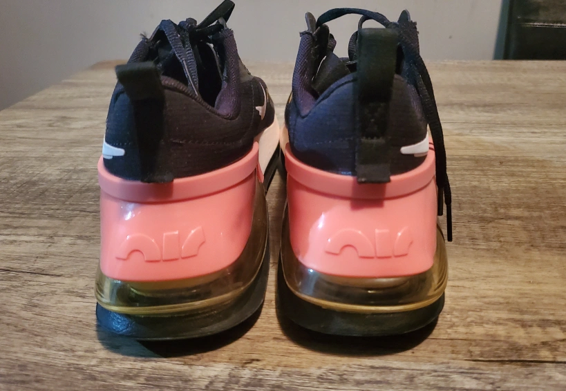 Black running shoes with pink and yellow accents. They are in great condition. Have only been worn once for fitting.