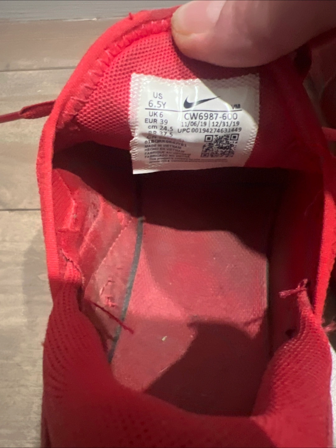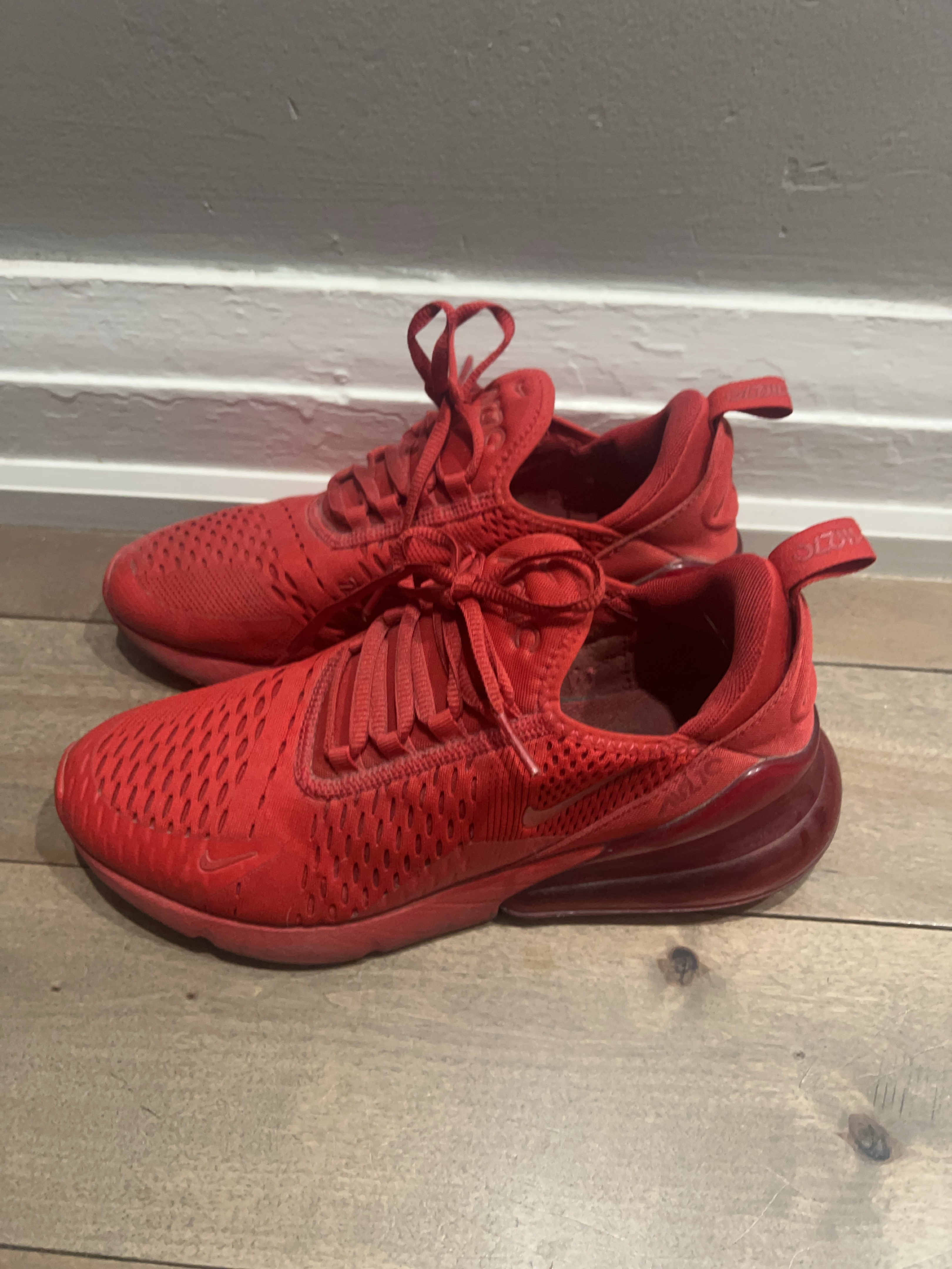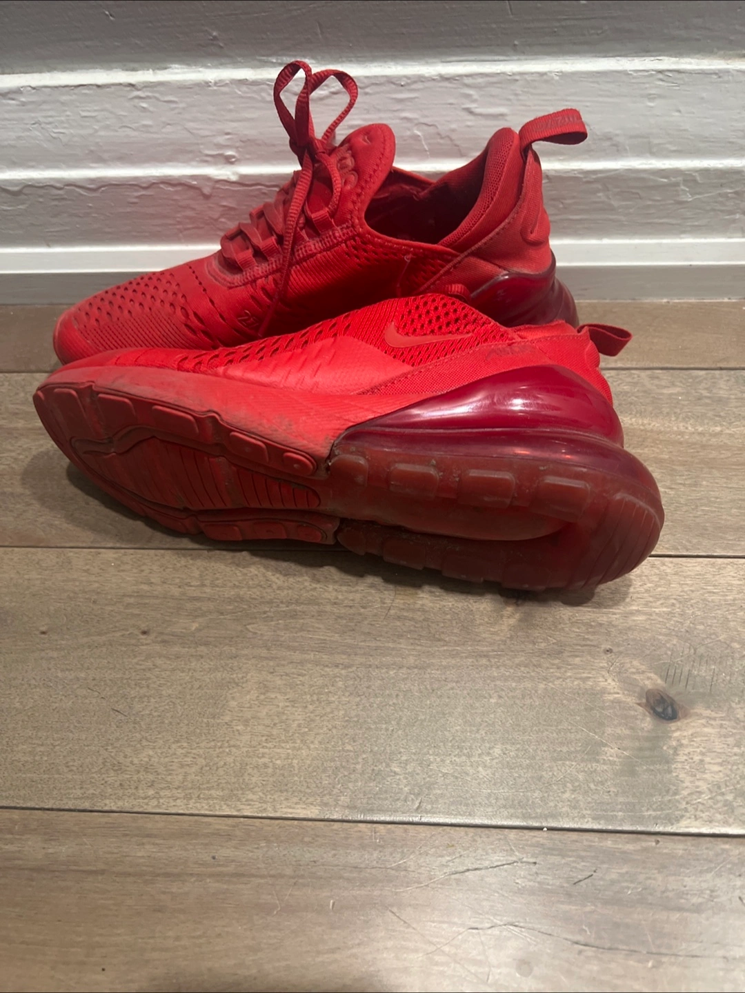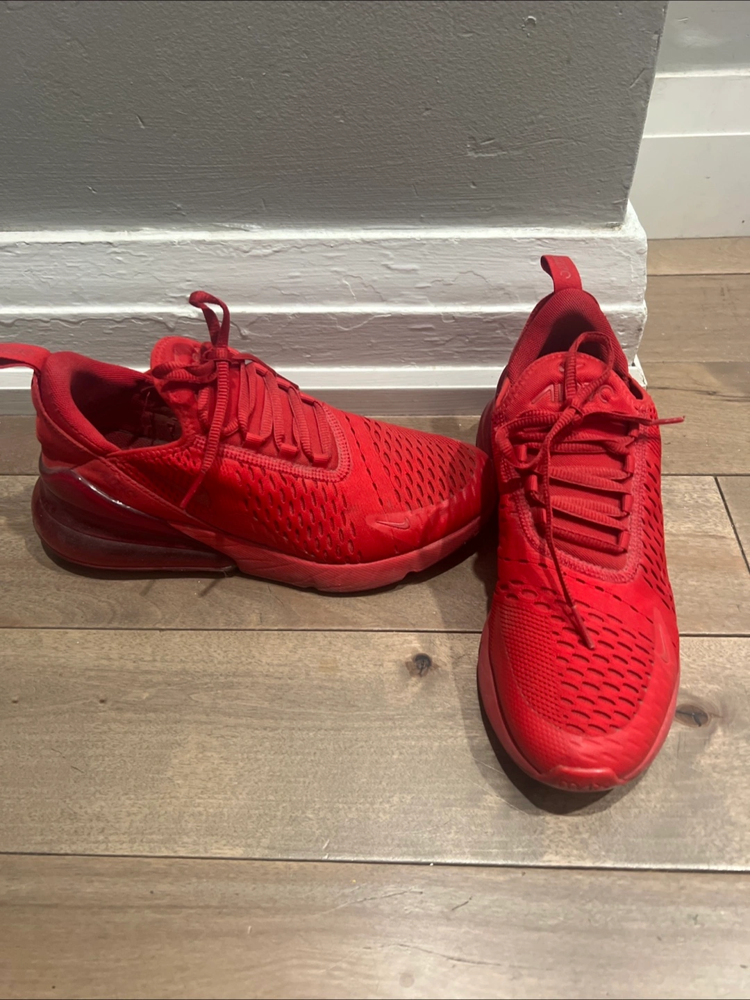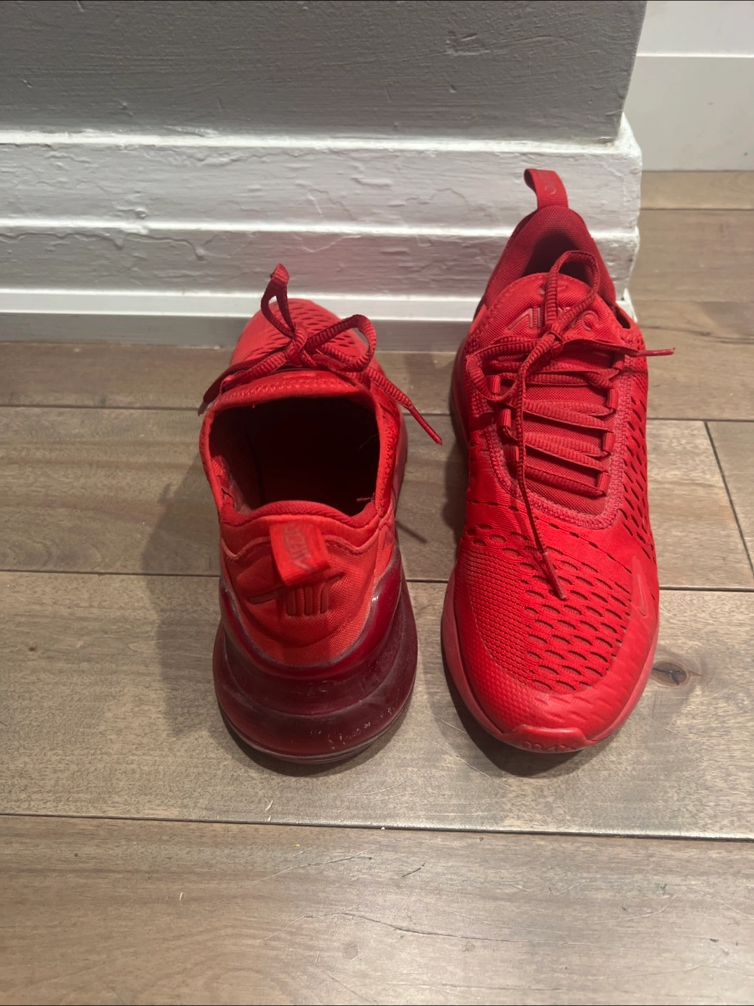 Red Nike Air Max 270 running shoes. Women's size 6.5Y. Good condition. Minimal wear.