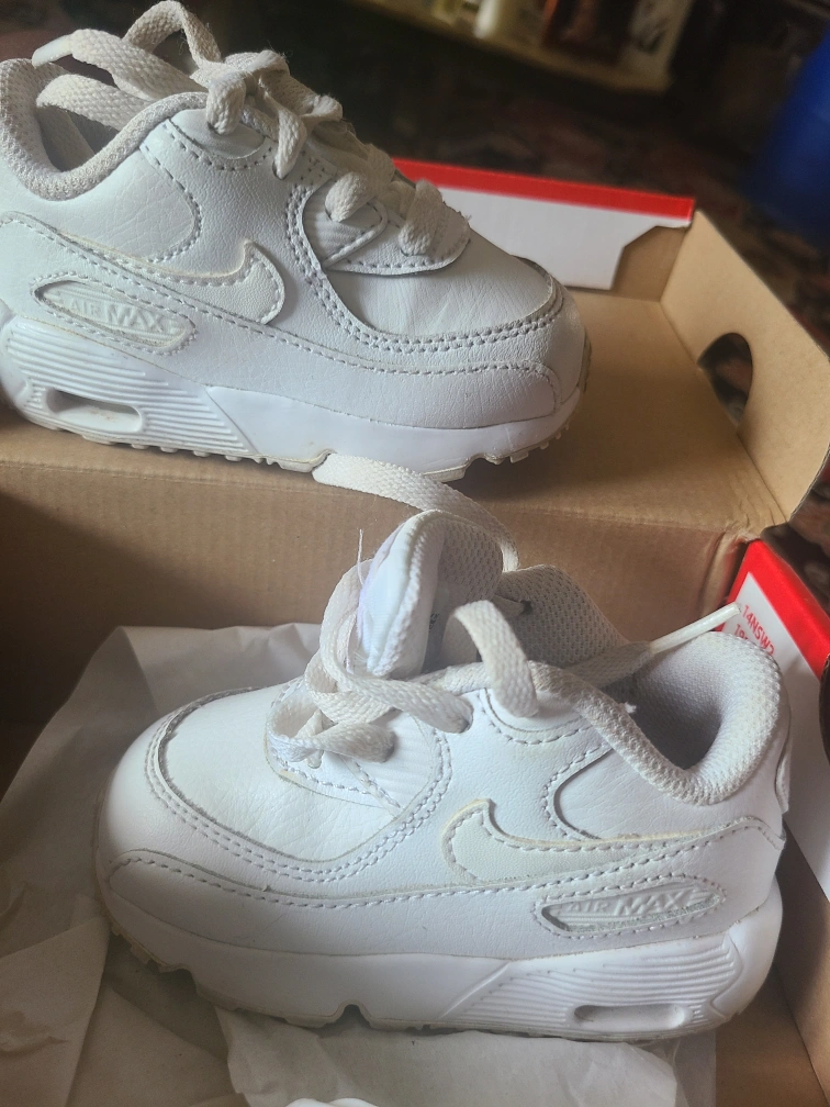 68Selling a pair of Nike Air Max 90 toddler shoes in white. They are size 5 and come with the original box. These classic sneakers are in great condition and perfect for your little one!