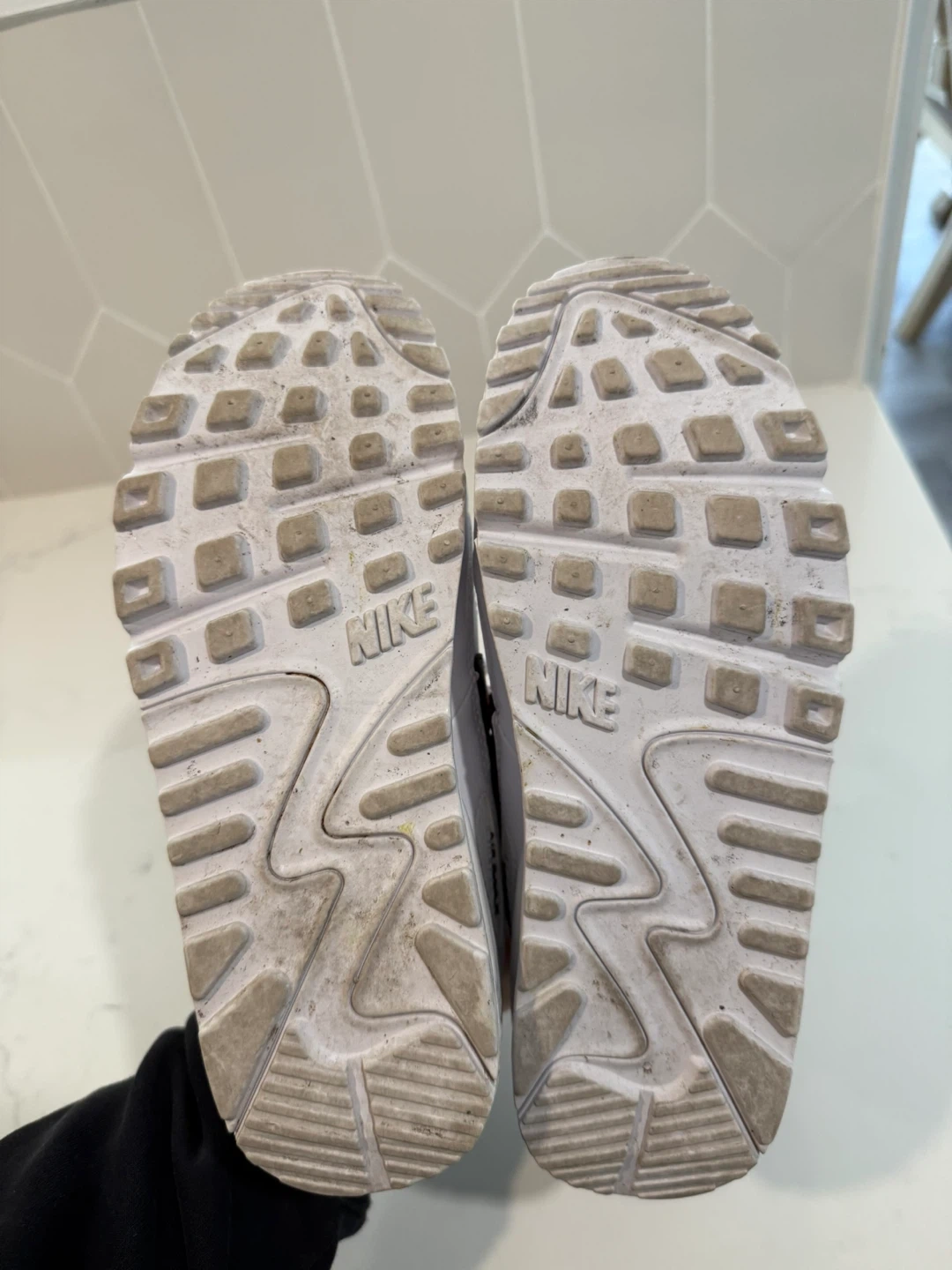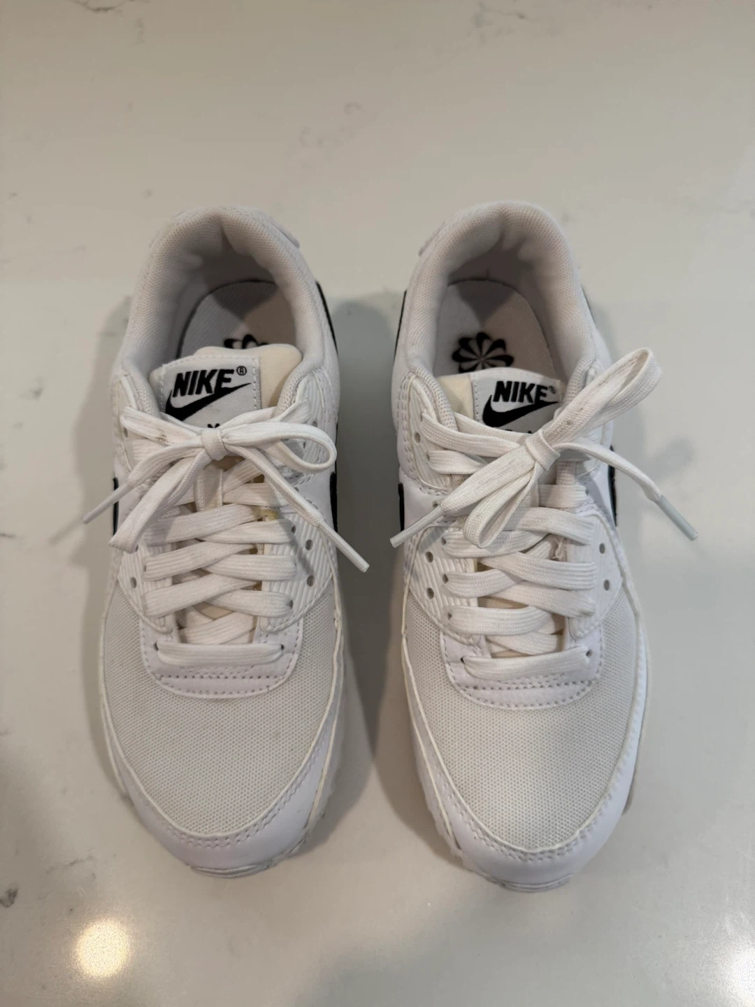 65Selling a pair of Nike Air Max 90 in white, size 6. They show some signs of wear on the soles but otherwise in good condition. Classic style and super comfy for everyday wear! Only worn a few times. Bought for $150