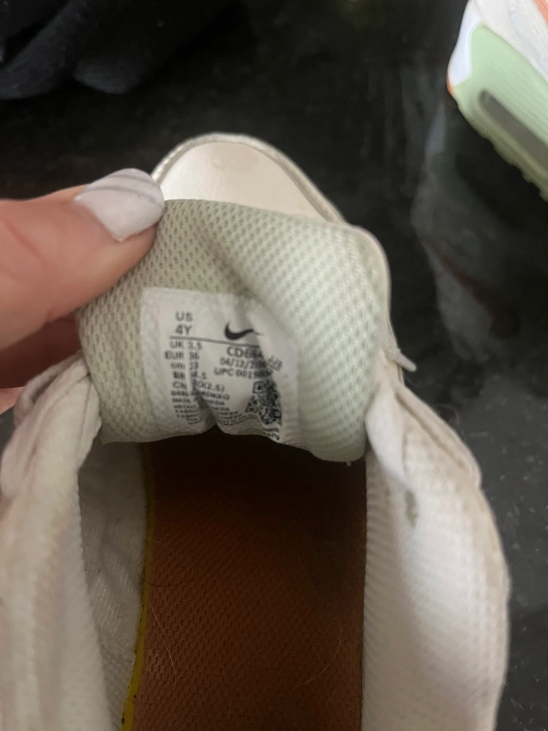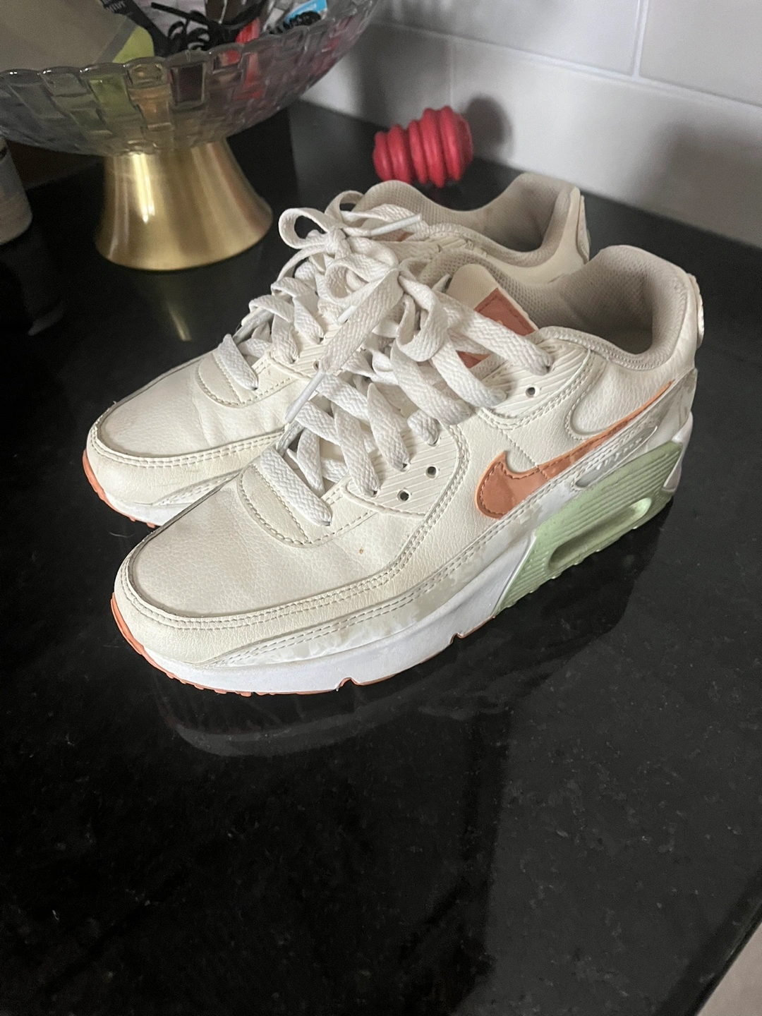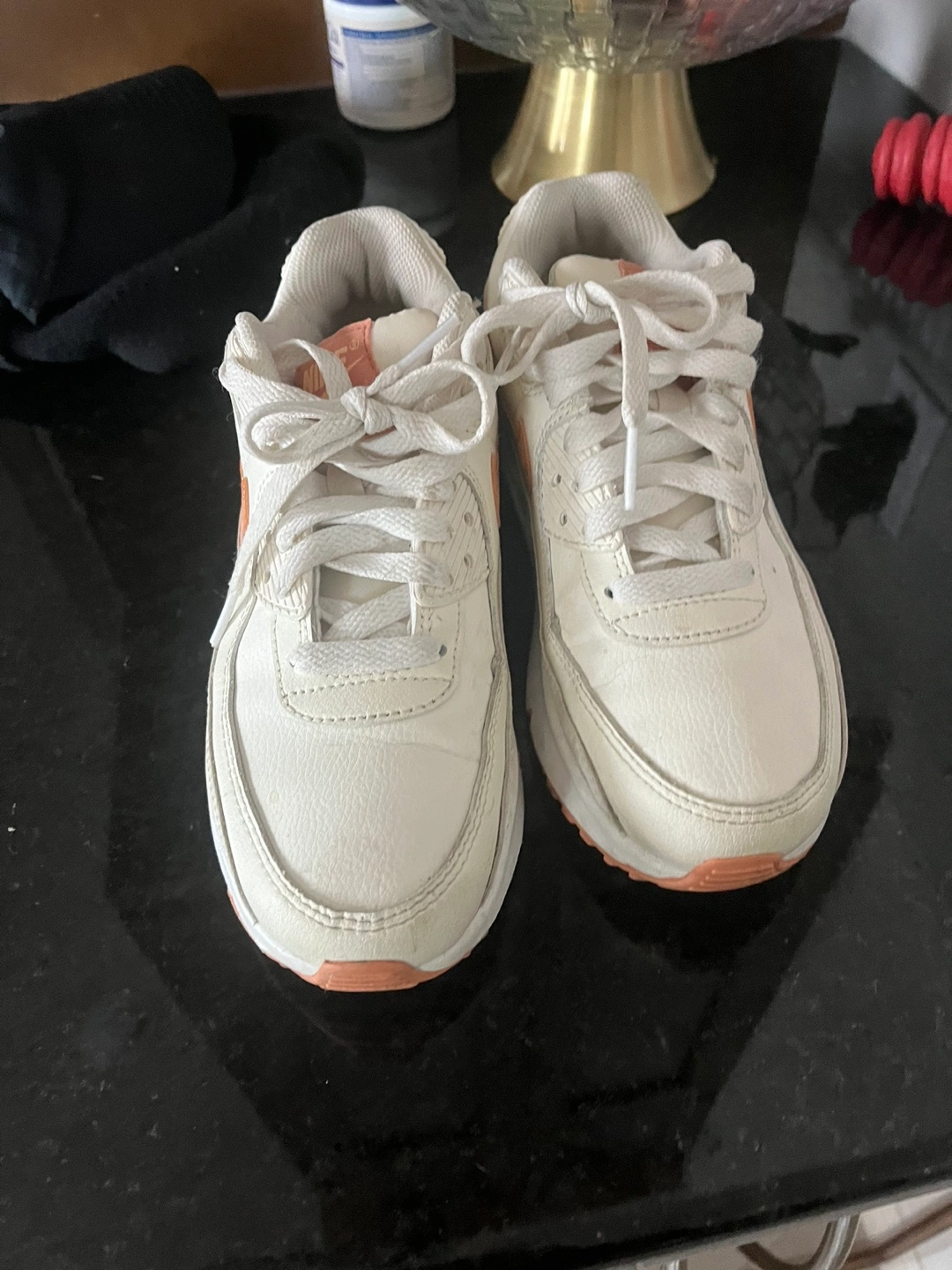 White leather sneakers with peach accents. Size 4Y or 6.5 women’s Pick up sturgeon county or North Edmonton