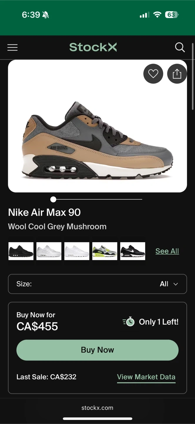 15Very lightly worn Nike Airmax 90 wool cool grey mushroom selling for $300, on StockX for $455 new