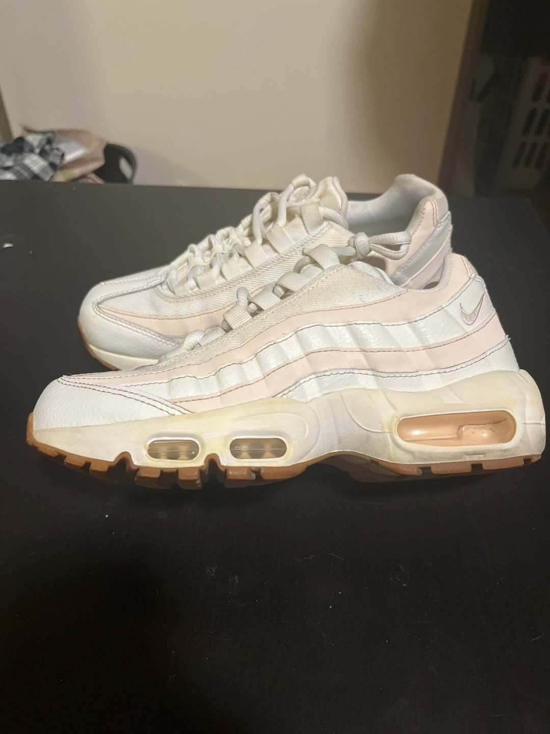 Selling a pair of Nike Air Max 95 sneakers. They are in used condition, with some visible wear. The size is 6 womens . Great for everyday wear!