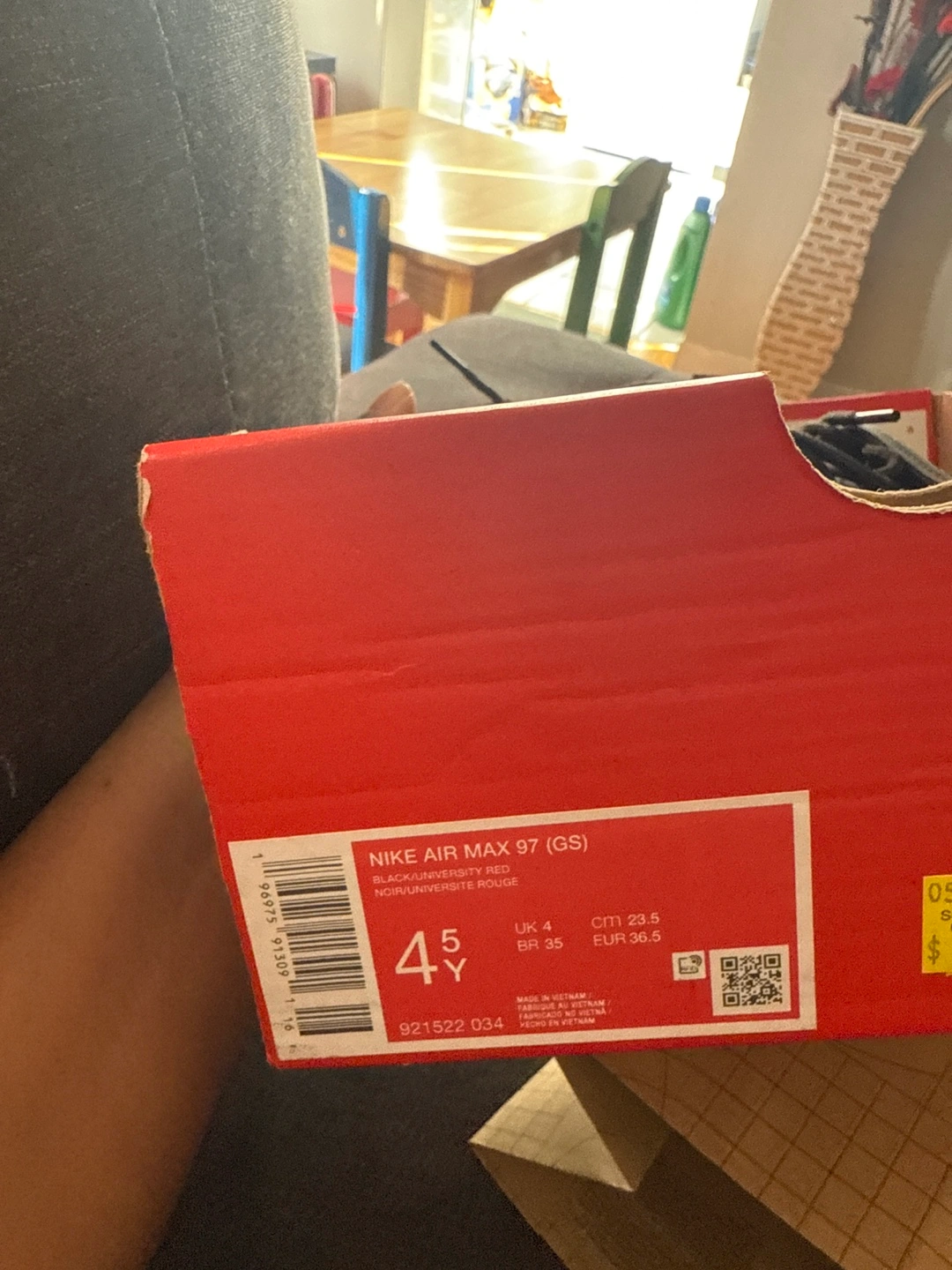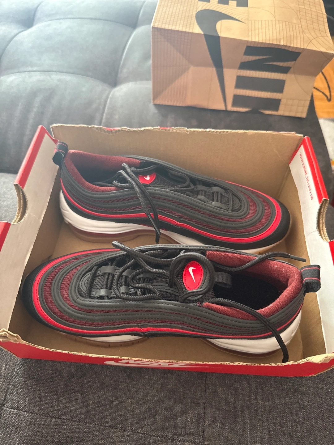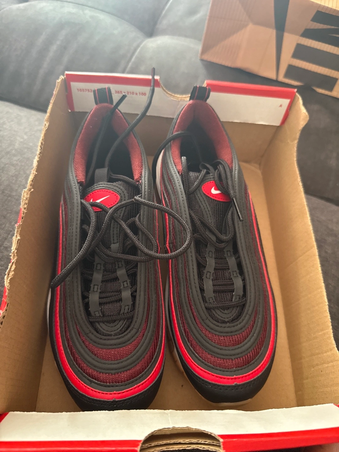Nike Air Max 97 (GS) sneakers. Black and University Red colourway. Size 4.5Y . New in box.