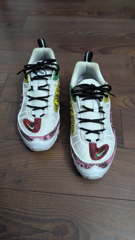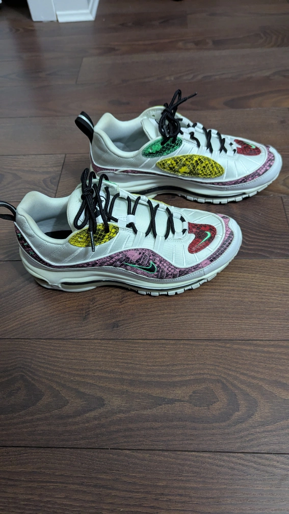 Women's Nike Air Max 98 running shoes. Snakeskin print. Multicoloured accents. Size 8.5