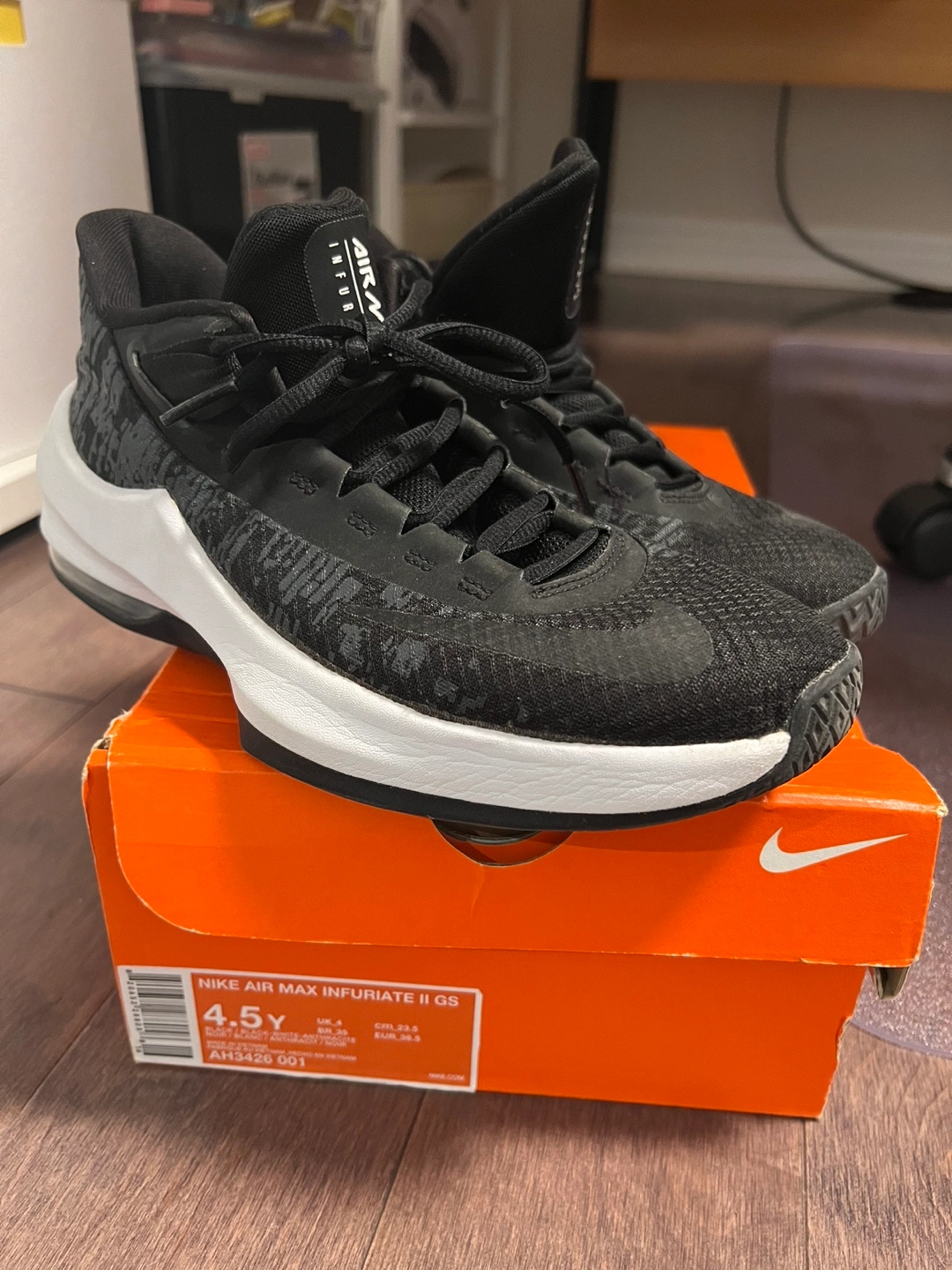 107Black and white basketball shoes. Comes with original box. Great condition!