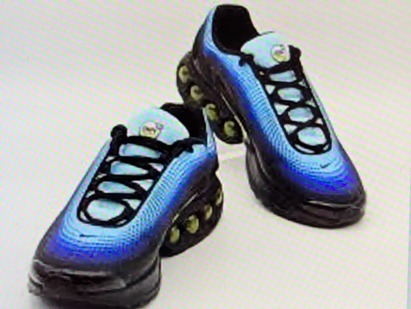 Pair of used Nike Air Max Plus DN running shoes. Sky Blue and black colour scheme. Men's size 10. Features visible Air Max cushioning. Laces included. Condition 9/10.