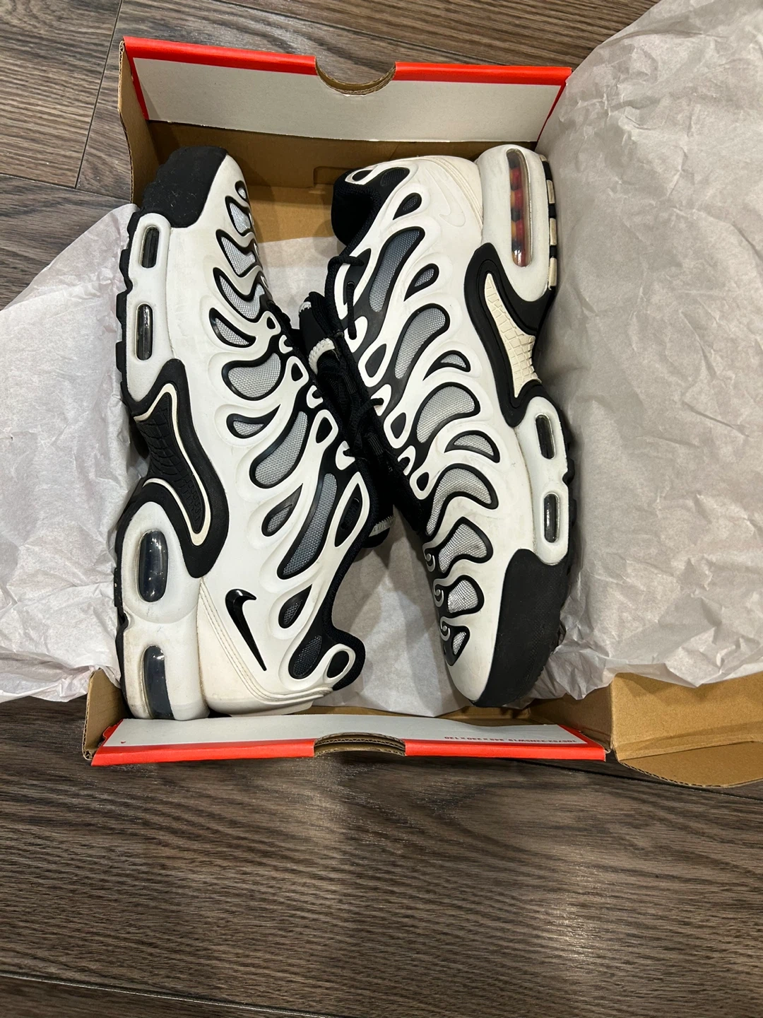 89Selling a pair of Nike Air Max Plus TN sneakers in black and white. They are in great condition and come with the original box. Size is 12 US. Perfect for everyday wear!