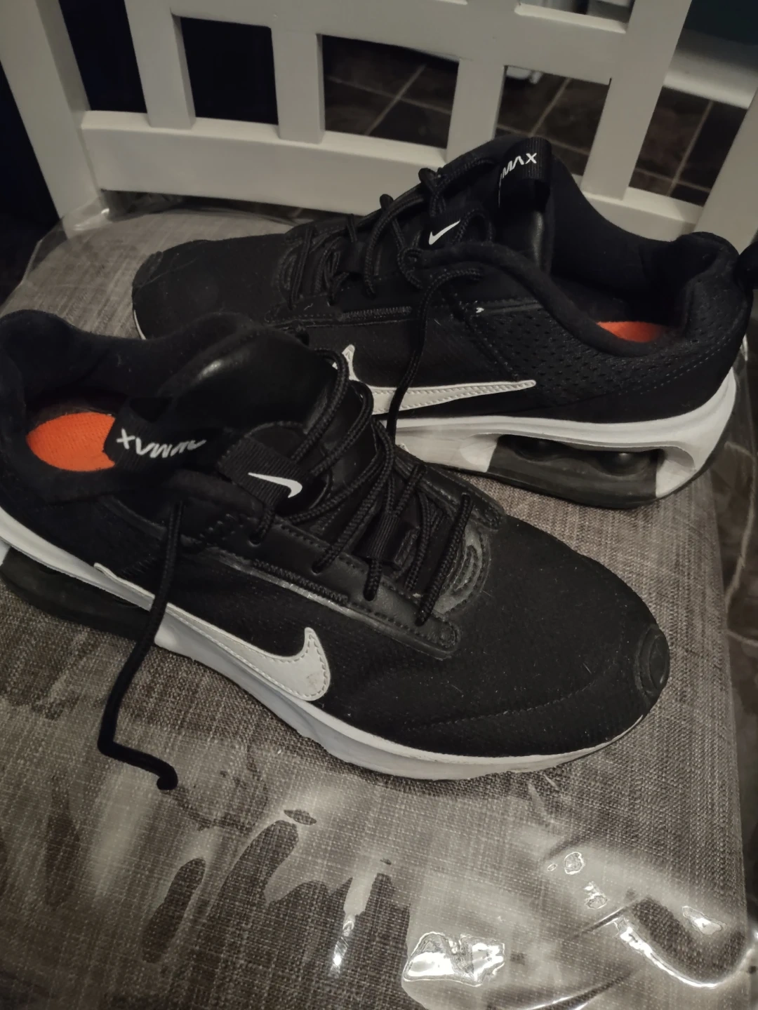 10Selling a pair of Nike Air Max running shoes in size 7.5. They are in great condition and ready for a new owner. The shoes feature a black and white design. Perfect for running or everyday wear!